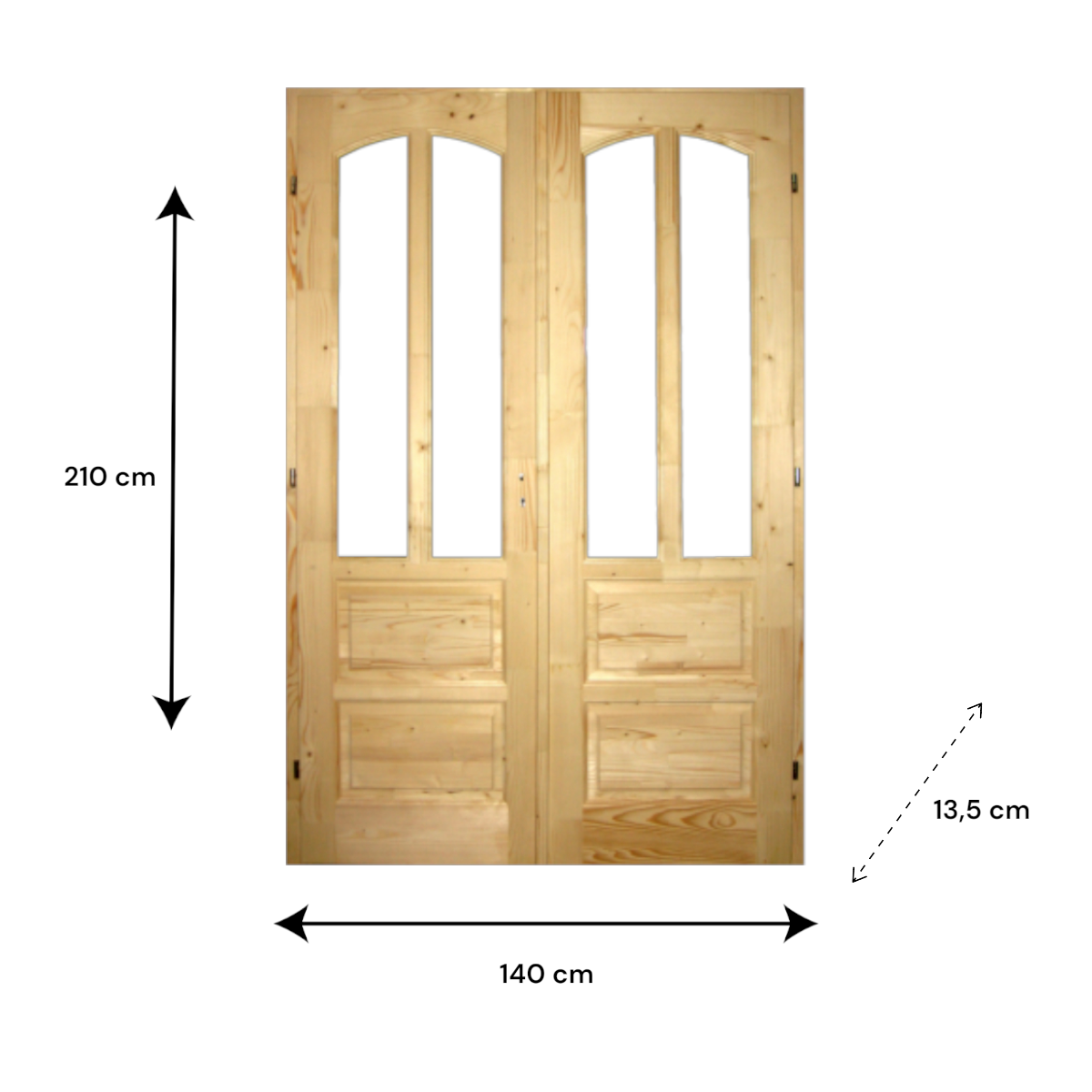 A Roxane Classic beltéri ajtó a természetes tömör fenyő erezetével és klasszikus kialakításával elegáns megoldás a nagyobb belső terek elválasztására. A kétszárnyú, félig üvegezhető kivitel világosabbá és tágasabbá teszi a helyiséget, miközben a pallótokos szerkezet erős, megbízható alapot biztosít.