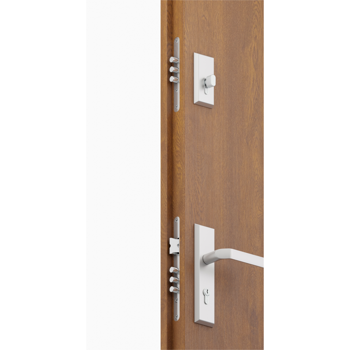 A préselt acéllemez szerkezet 55 mm vastag ajtószárnnyal párosul, amely masszívabb kialakítást biztosít. Az expandált polisztirol szigetelés hozzájárul a hő- és hangszigeteléshez, a felületet borító UV-álló PVC dekorfólia pedig hosszabb ideig megőrzi az ajtó megjelenését.