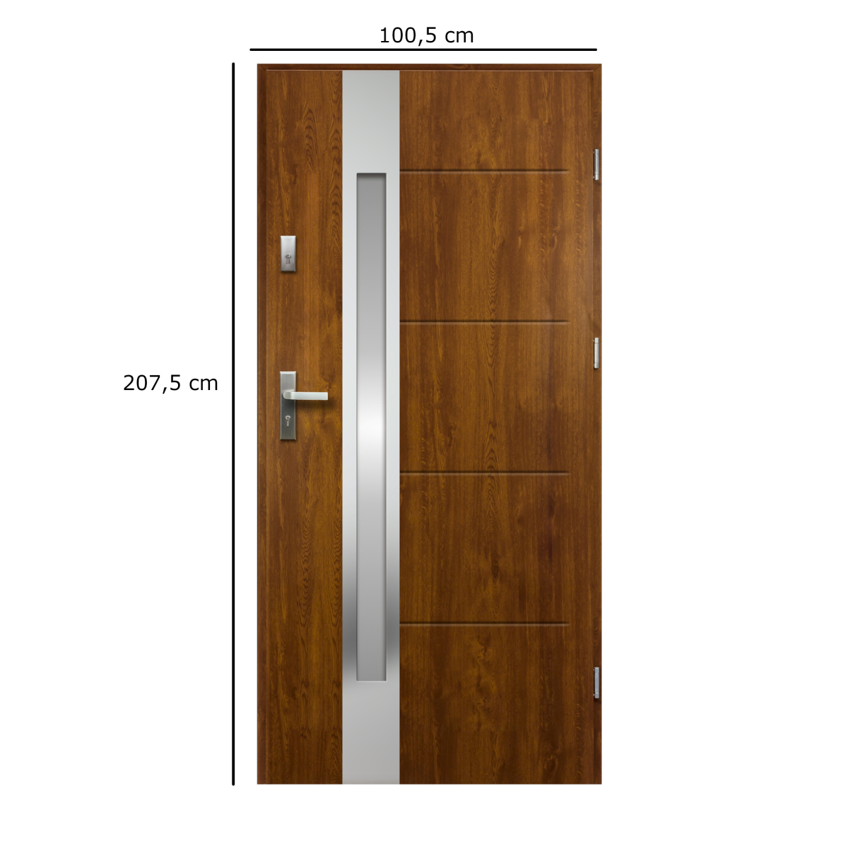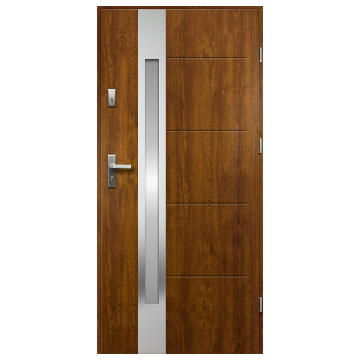 Az Ariadna kültéri bejárati ajtó arany tölgy színben elegáns és időtálló megoldást kínál családi házakhoz és társasházakhoz.
