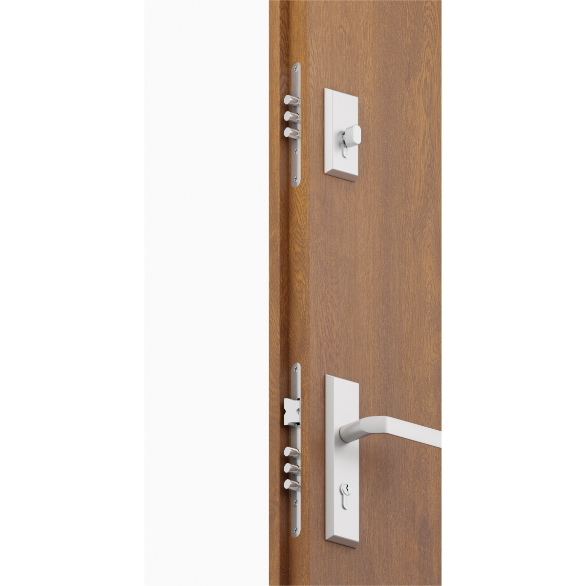 Az ajtó szárnyvastagsága 55 mm préselt acéllemez. Szigetelése expandált polisztirol. Lemezvastagság: (ajtókeret/ajtólap) - 1,2 mm/ 0,6 mm.