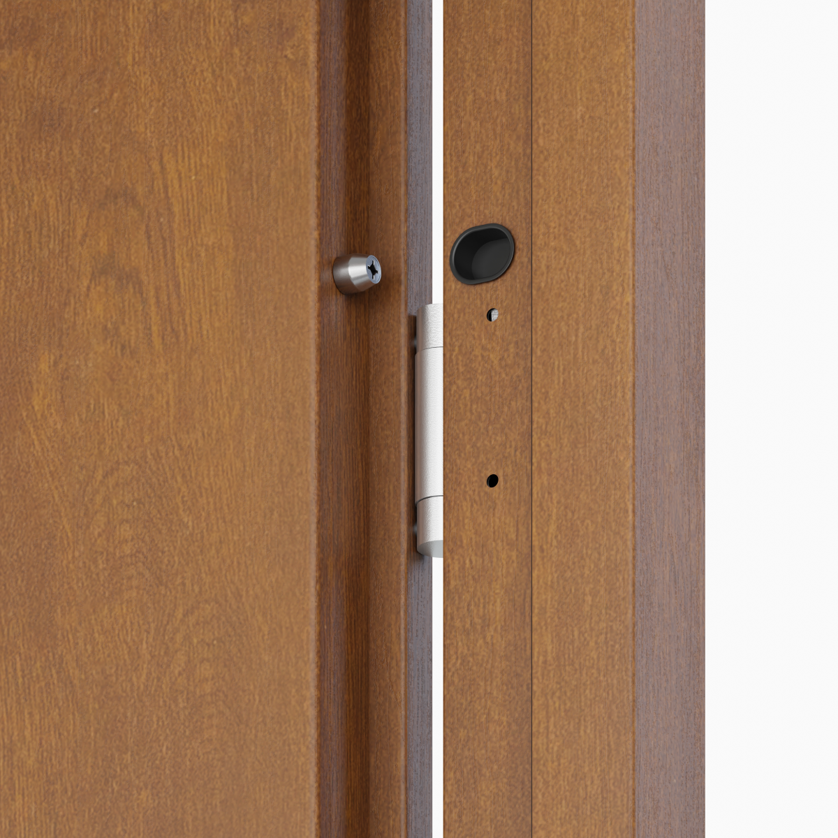 A biztonság érdekében az ajtó 2 független zárszerkezettel és 3 állítható zsanérral van felszerelve. A 180 fokos nyitási tartomány kényelmes használatot tesz lehetővé, a keretben és a küszöbnél elhelyezett tömítések pedig javítják a záródást.