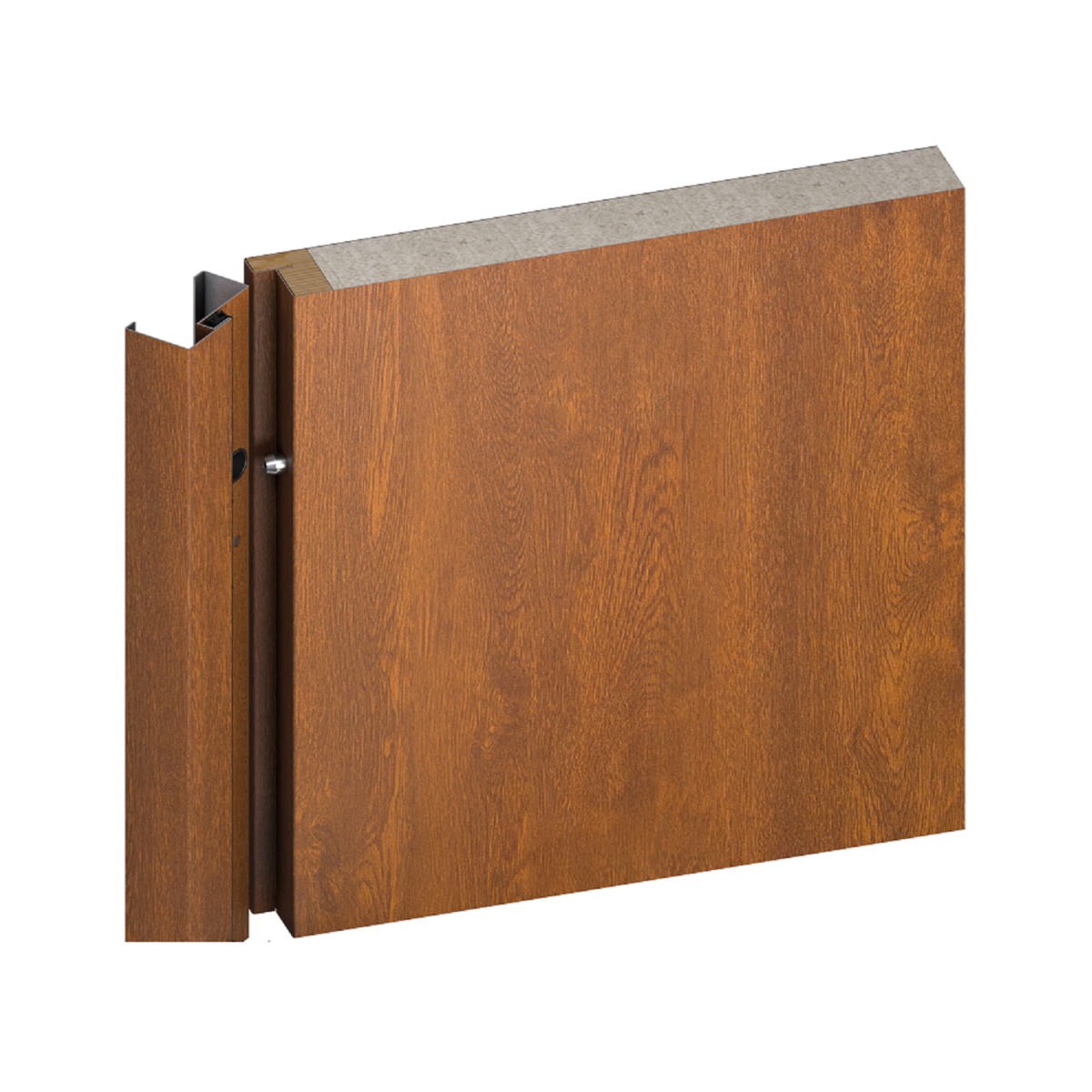 A préselt acéllemez szerkezet és az 55 mm vastag ajtószárny stabilabb kialakítást nyújt, míg az expandált polisztirol szigetelés gondoskodik a hő- és hangszigetelésről. Az UV-álló PVC dekorfóliával bevont felület hosszabb ideig megőrzi esztétikus külsejét kültéri használat során is.