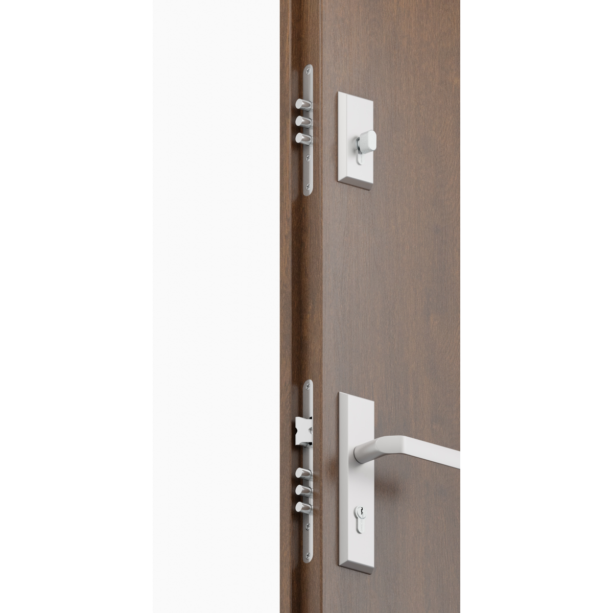 A biztonság érdekében az ajtó 2 független zárszerkezettel és 3 állítható zsanérral van felszerelve. A 180 fokos nyitási tartomány kényelmes használatot tesz lehetővé, a keretben és a küszöbnél elhelyezett tömítések pedig javítják a záródást.