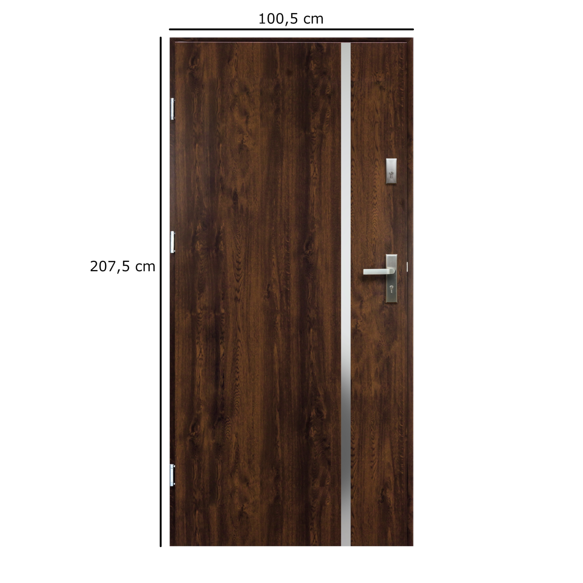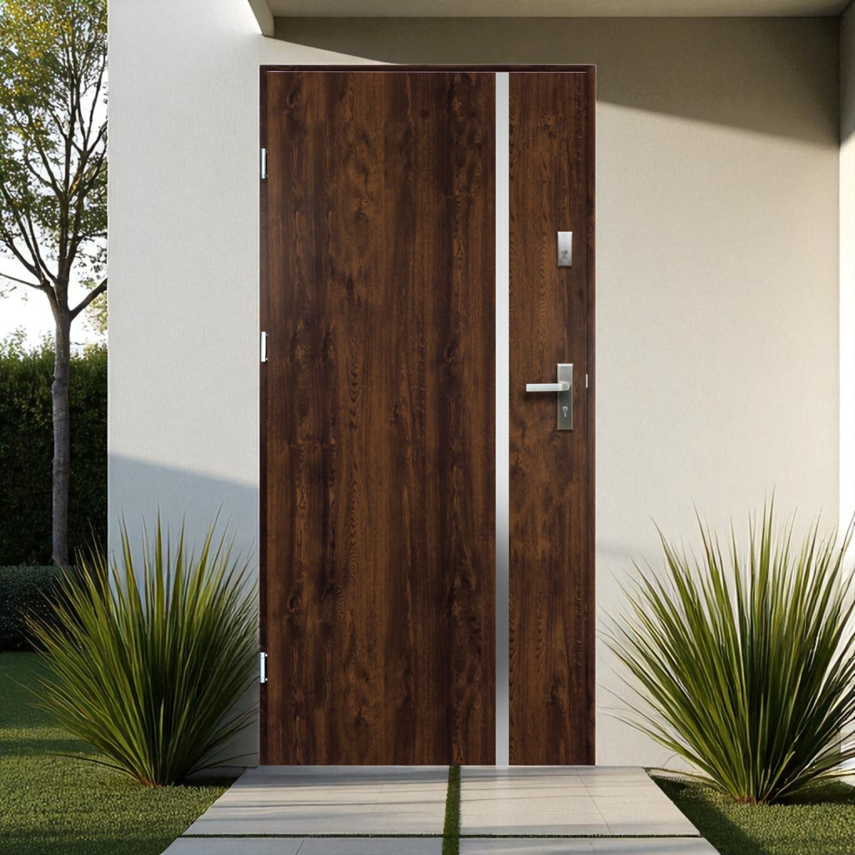 A Hebe kültéri bejárati ajtó sötét dió színben, meleg, mégis modern megjelenéssel kínál elegáns megoldást családi házakhoz és társasházakhoz.