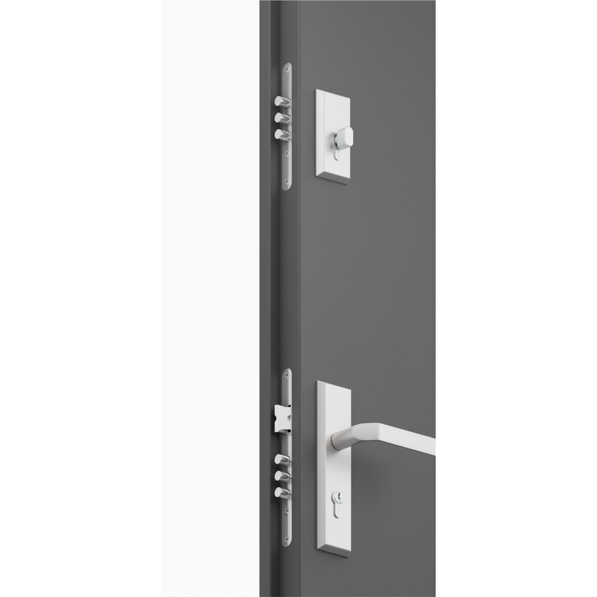 A biztonság érdekében az ajtó 2 független zárszerkezettel és 3 állítható zsanérral van felszerelve. A 180 fokos nyitási tartomány kényelmes használatot tesz lehetővé, a keretben és a küszöbnél elhelyezett tömítések pedig javítják a záródást.