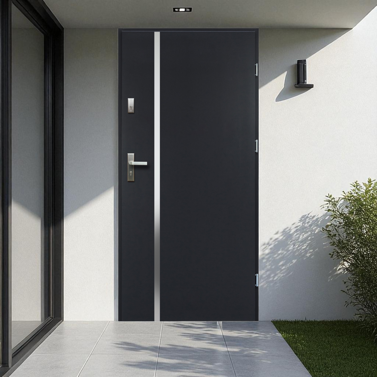 A Hebe kültéri bejárati ajtó antracit színben, letisztult és modern megjelenéssel kínál elegáns megoldást családi házakhoz és társasházakhoz.