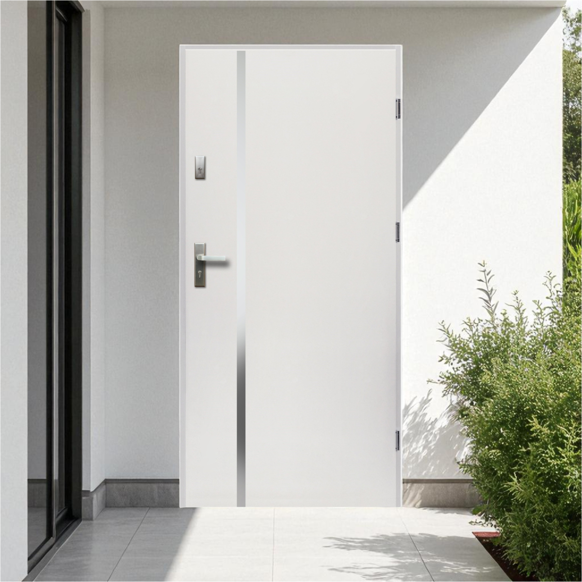 A Hebe kültéri bejárati ajtó fehér színben, letisztult és modern megjelenéssel kínál elegáns megoldást családi házakhoz és társasházakhoz.