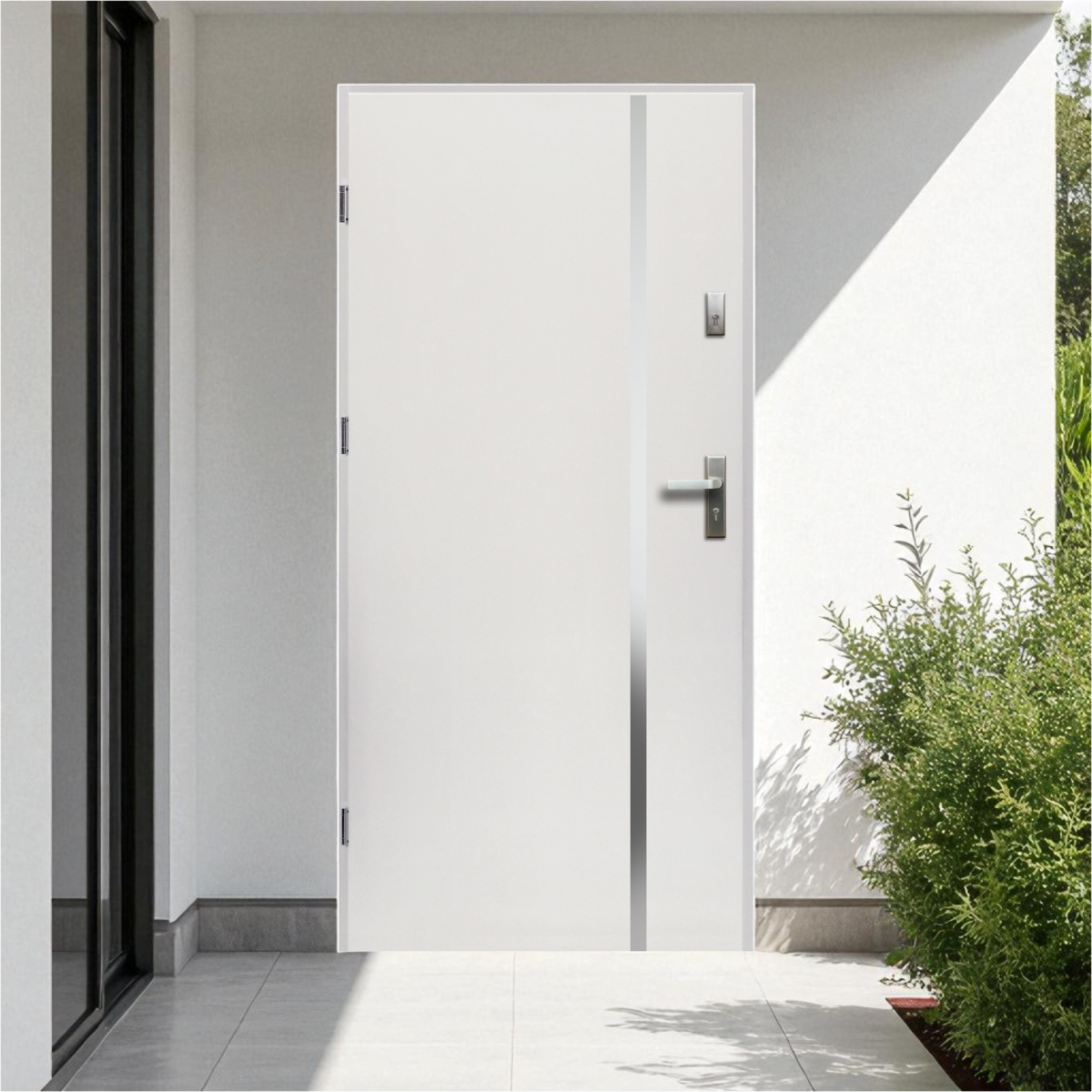 A Hebe kültéri bejárati ajtó fehér színben, letisztult és modern megjelenéssel kínál elegáns megoldást családi házakhoz és társasházakhoz.