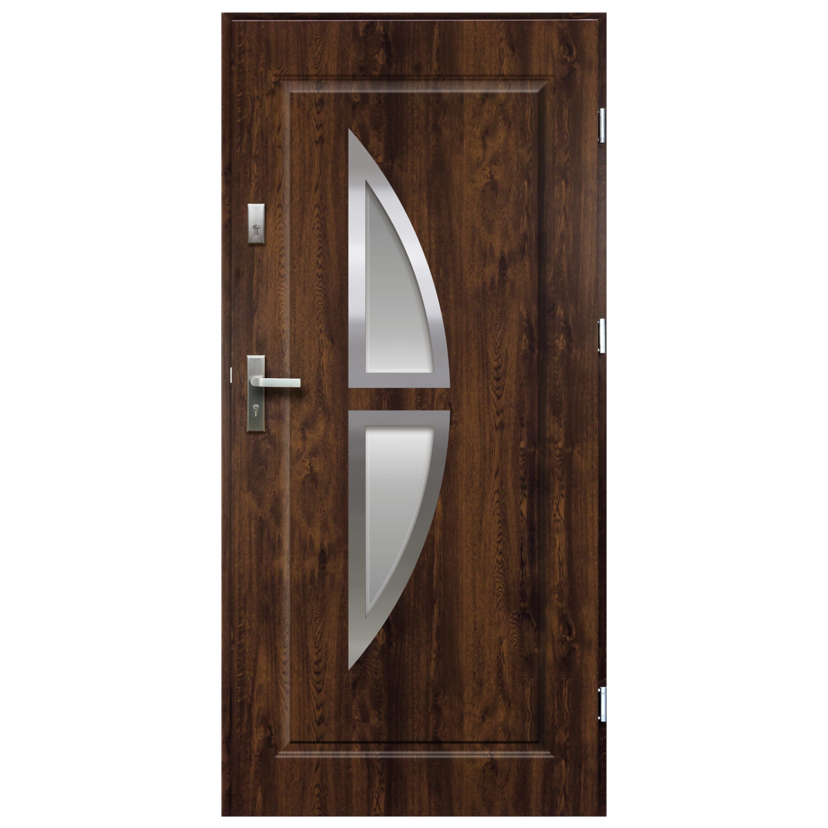 Kronos sötét dió színű, kültérre tervezett acél bejárati ajtó jobbos nyitásiránnyal.