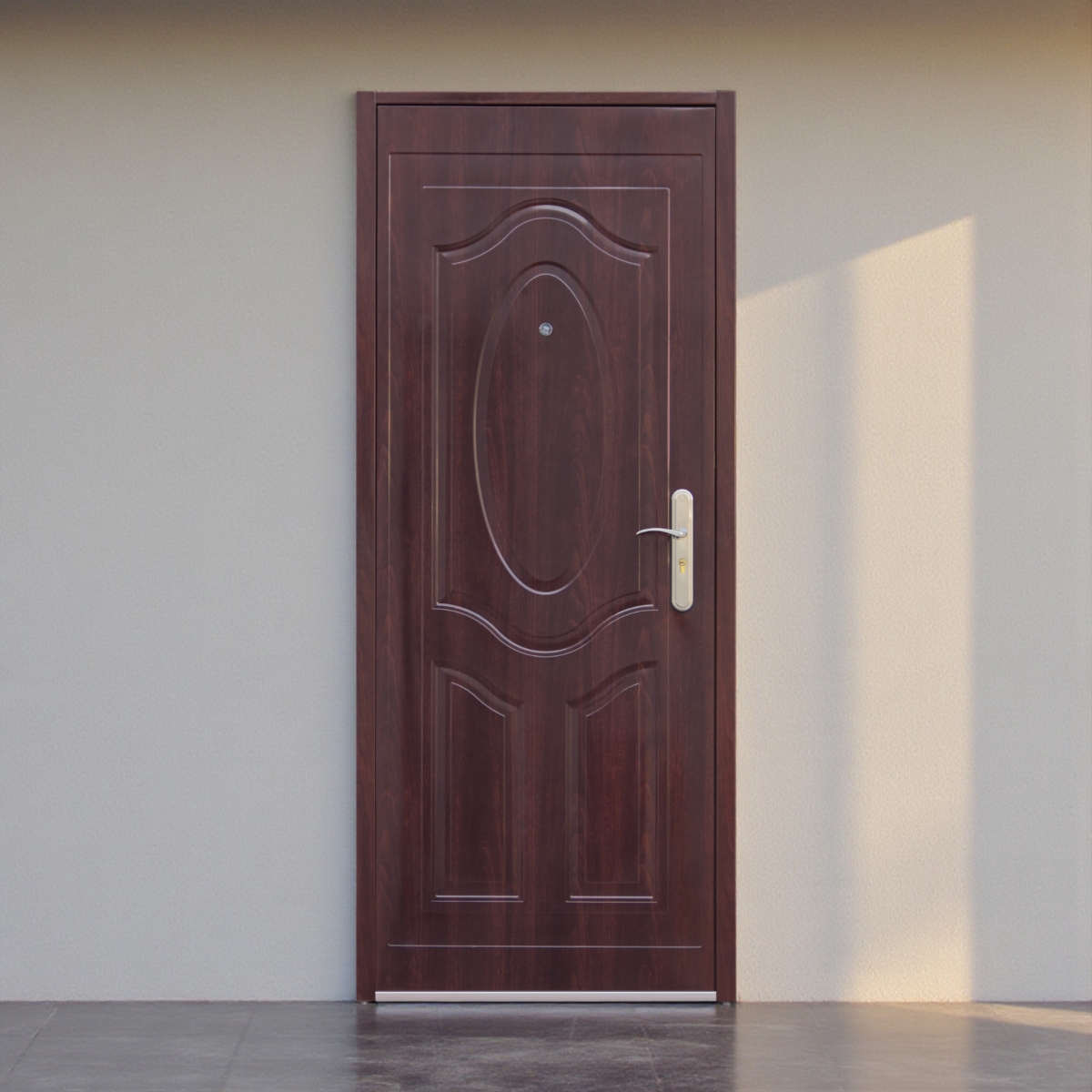 Ez az acél lépcsőházi bejárati ajtó mahagóni színével klasszikus, rendezett megjelenést ad otthonodnak.
