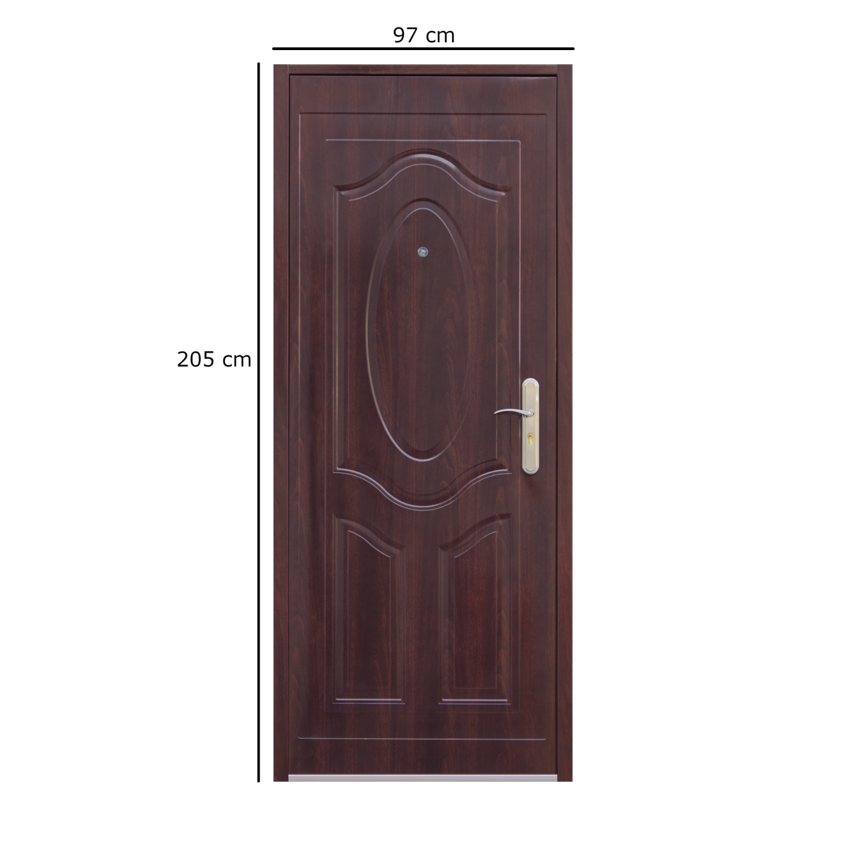 Acél balos 97x205cm mahagóni lépcsőházi bejárati ajtó
