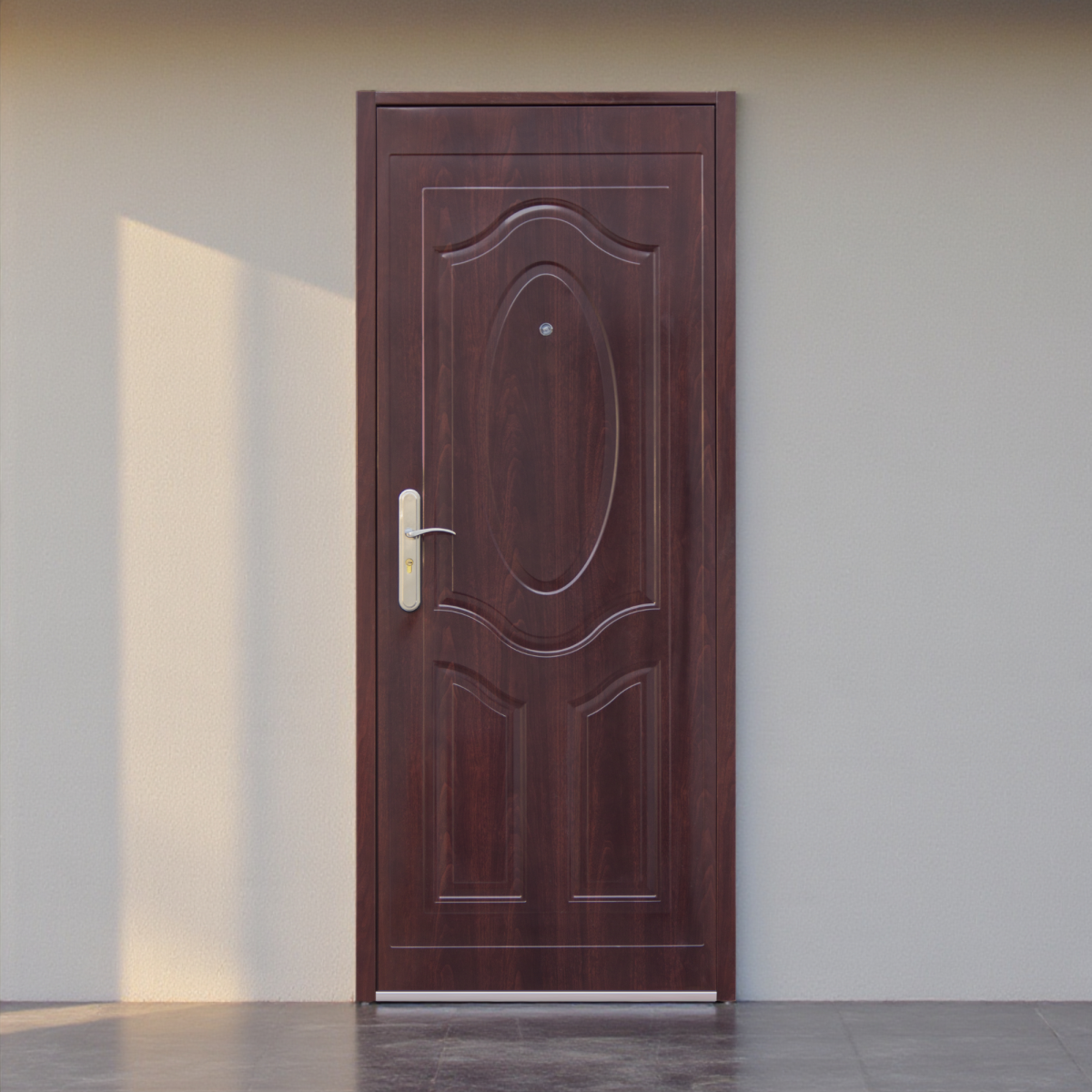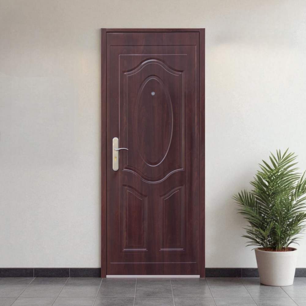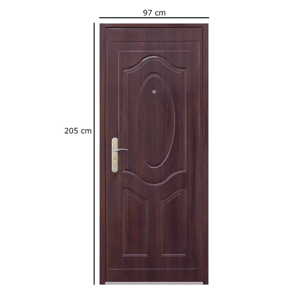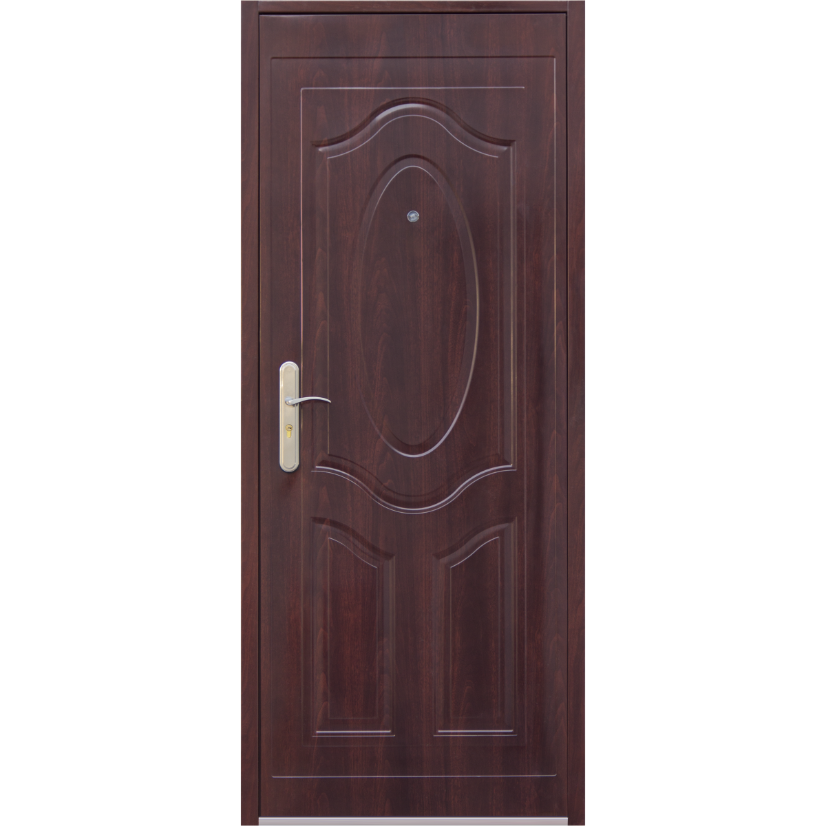 Ez az acél lépcsőházi bejárati ajtó mahagóni színével klasszikus, rendezett megjelenést ad otthonodnak.