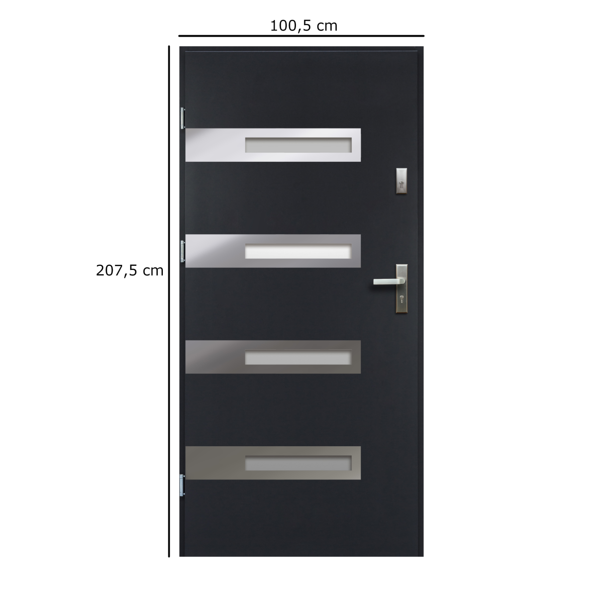 A Rea kültéri bejárati ajtó antracit színben elegáns és meleg megjelenést kölcsönöz otthonodnak.