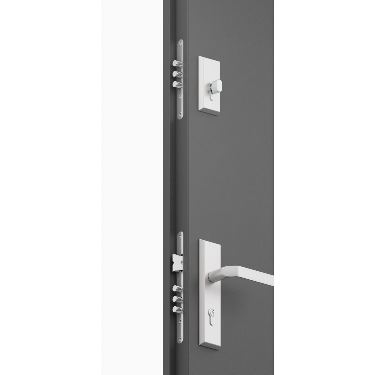 Az ajtó 2 független zárszerkezettel és 3 állítható zsanérral van felszerelve, így biztonságosabb és stabilabb működést nyújt. A keretben és a küszöbnél elhelyezett tömítések biztosítják a jobb záródást, míg az UV-álló PVC dekorfólia hosszabb ideig megőrzi az ajtó esztétikus antracit színét.