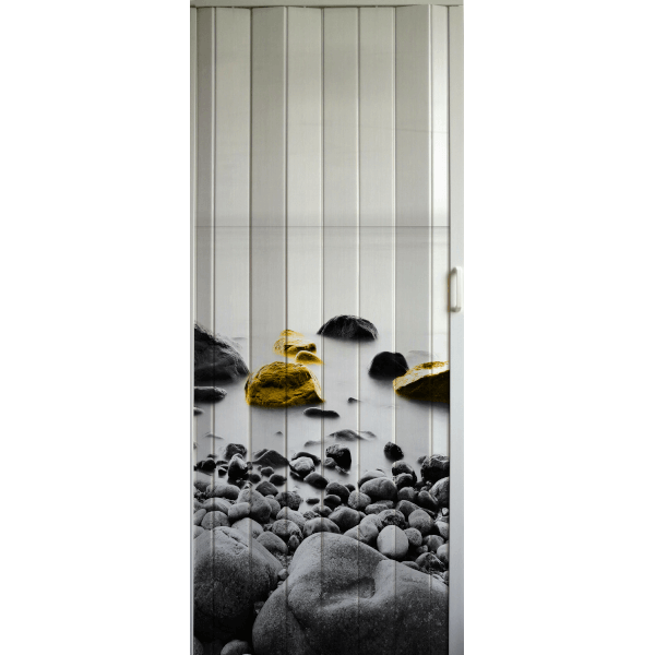 PVC harmonikaajtó.Műanyag fogó. Méret: 82x203x0,6 cm. Minta: Kő a tengerben.