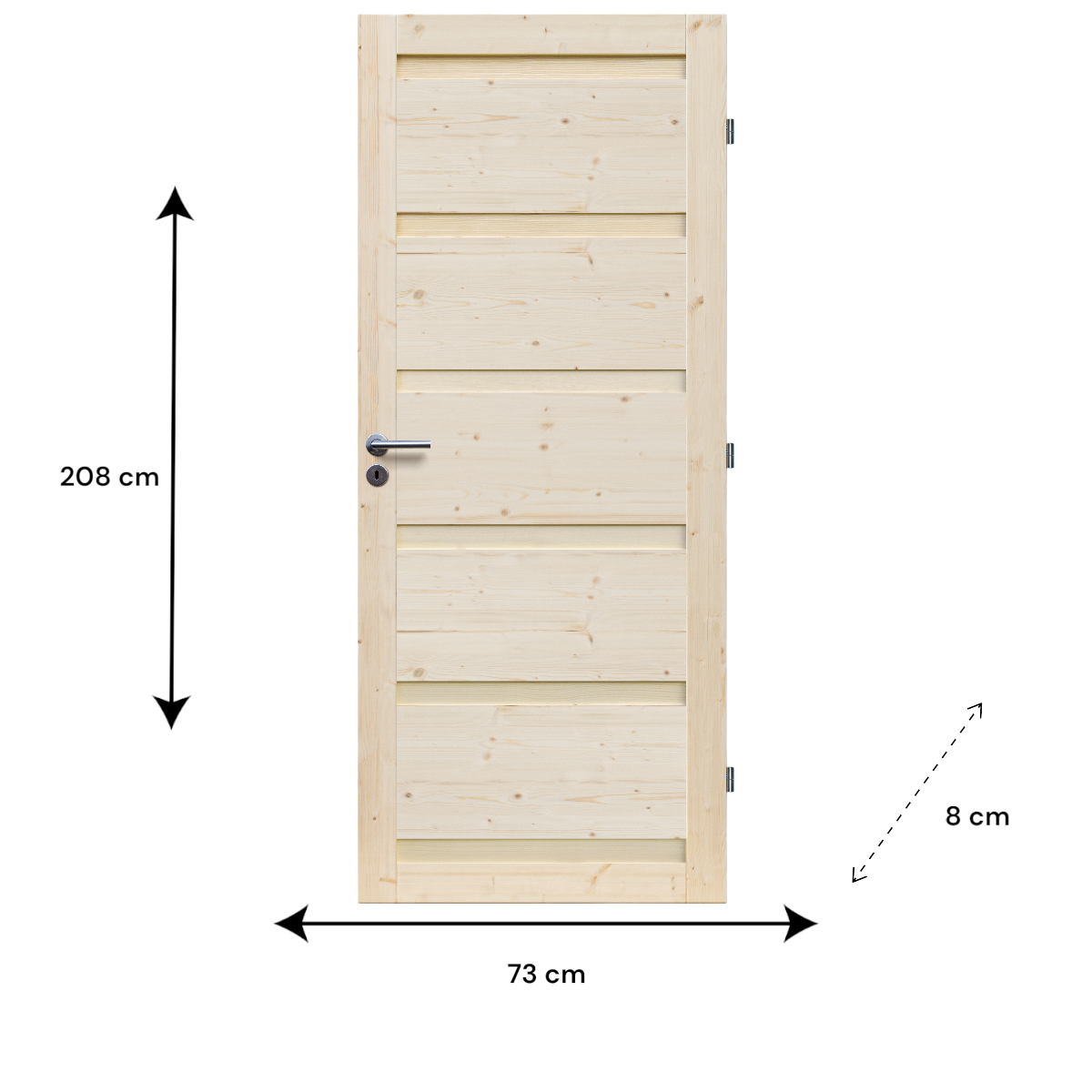 Etna 75×210 cm jobbra nyíló gerébtokos tele beltéri ajtó – fenyőből, 8 cm gerébtokkal
