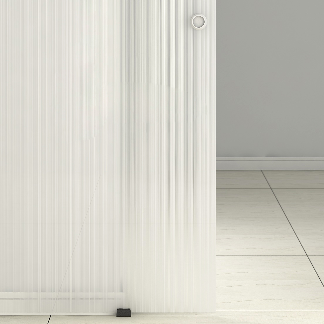 8 mm vastag, edzett üveg tolóajtó-ajtólap, melyet egy elegáns tartó konzolra lehet felfüggeszteni. A görgős mechanika könnyed mozgatást tesz lehetővé.