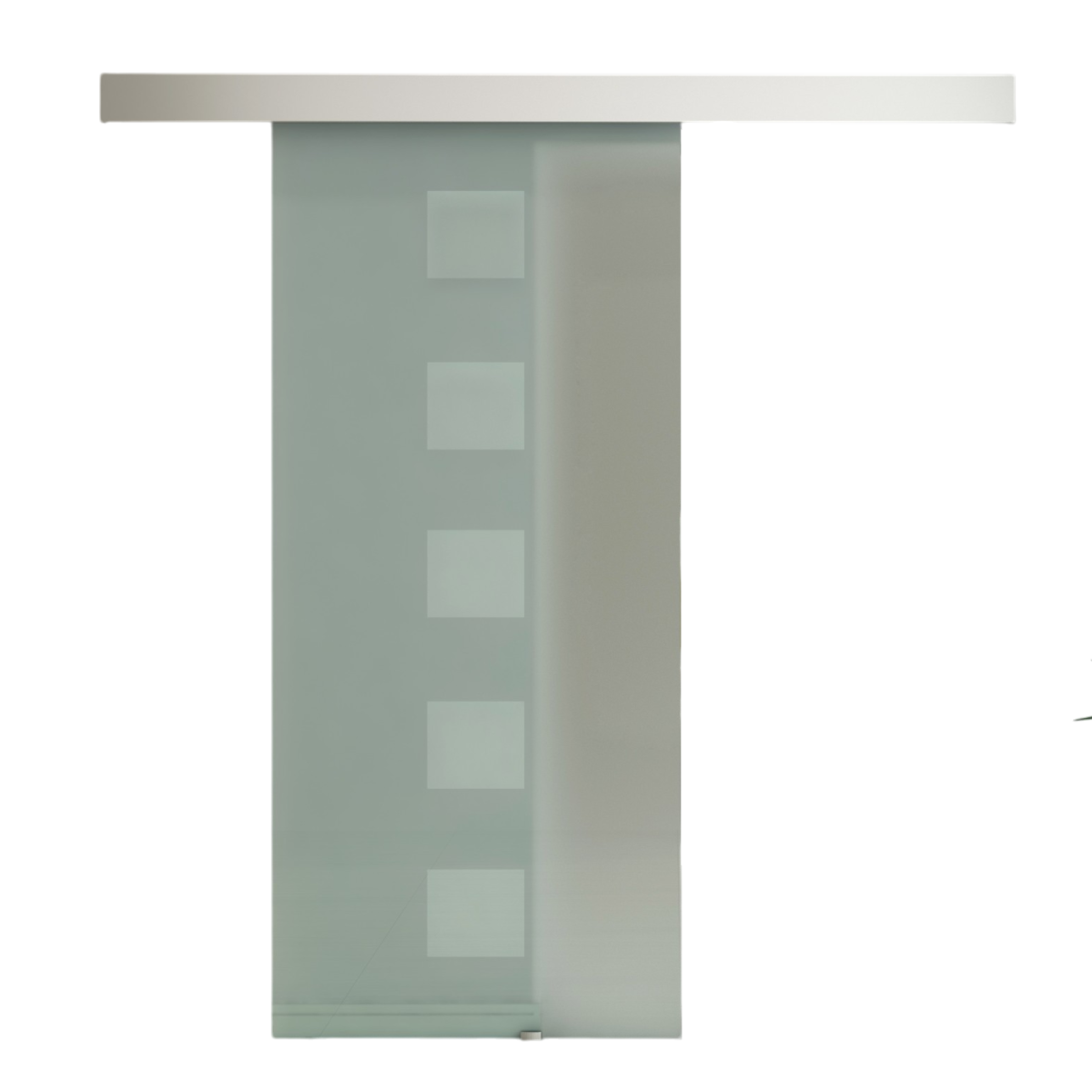 8 mm vastag, savmart, mintás (G43) edzett üveg tolóajtó-ajtólap, melyet egy elegáns tartó konzolra lehet felfüggeszteni. A görgős mechanika könnyed mozgatást tesz lehetővé. Felszerelése nem igényel különösebb előképzettséget.