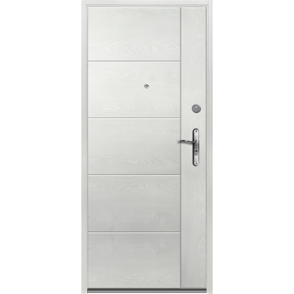 Biztonsági bejárati ajtó "UNO" fehér dekor, mérete: 97x205cm, ajtószárny vastagsága: 70mm, 4 pontos zárszerkezet, ásványgyapot szigetelés, napi zár, rozsdamentes acél küszöb, 2db zárral és kilinccsel együtt értékesítjük. Nyitásirány: bal (Nyitásirány meghatározása, jobbos, balos ajtó/ablak: Szembe kell állnunk az ajtóval/ablakkal, úgy hogy felénk nyíljon. Amelyik kezünk felé esnek az ajtó/ablak pántjai (zsanérjai), olyan nyitásirányú az ajtó/ablak.)