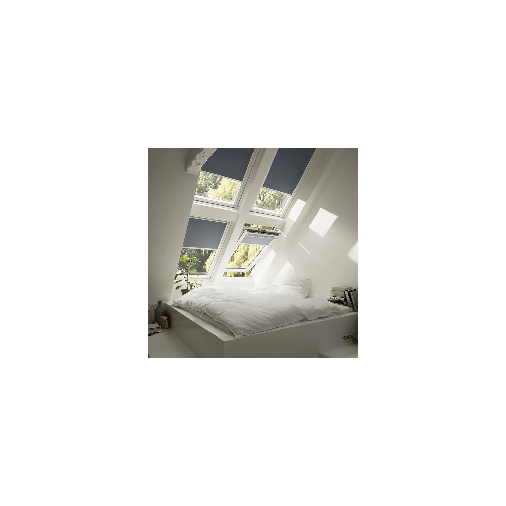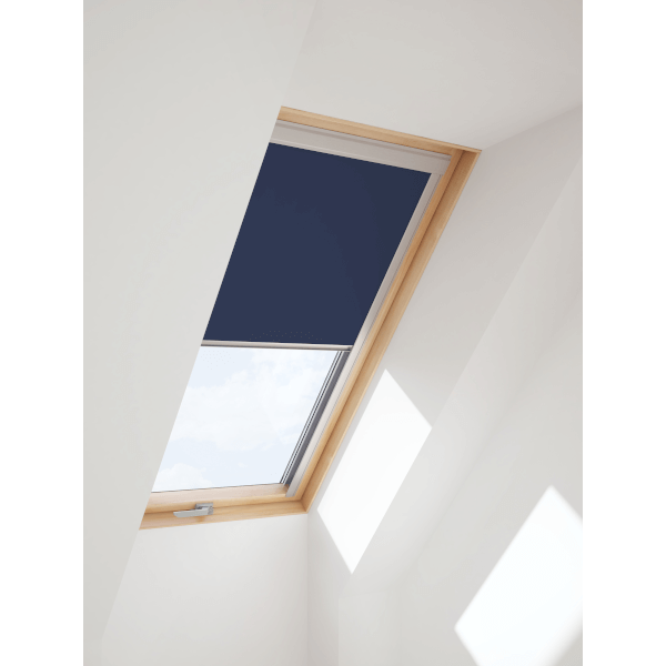 Contrio fényzáró roló (DUA), sötétkék színben. LUMICA, VELUX, FAKRO, OPTILIGHT tetőtéri ablakokhoz, 78x98cm ablak beépítési mérethez. A roló tökéletesen kizárja a fényt, a nappalt szükség szerint éjszakává változtatja. A különleges design a minőség minden jegyét magában hordozza, anyagban és felhasználhatóságban egyaránt. Elnyűhetetlen, szennyeződésnek ellenálló, antisztatikus gumival bevont anyagból készül. A fényzáró roló alumínium kerete lehetővé teszi, hogy a roló tetszőleges helyzetben megállítható legyen és akár 100%-ban kizárjuk a beszűrődő fényt. A roló szélei keskeny alumínium sínekben futnak.