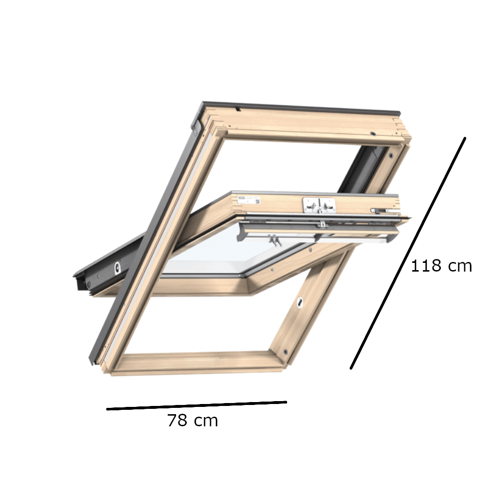 IVelux tetőtéri lakozott ablak, 3 rétegű üveges, felső kilinccsel. Mérete: 118x78cm. A felső kilincses Velux tetőtéri ablak két fő előnye van: a tetőablak egyszerűen kezelhető még akkor is, ha közvetlenül alatta bútorok találhatók, az ablak alacsonyabbra is építhető a tetőbe. Nappaliba, gyerekszobába, hálószobába és dolgozószobába a legalkalmasabb. Mivel a tetőtéri ablakok több fényt engednek be, mint a homlokzati ablakok, világosabb és tágasabb érzést nyújtanak otthonában. Beépítő keret nem tartozék. A feltüntetett méret a termék beépítési méretére vonatkozik.