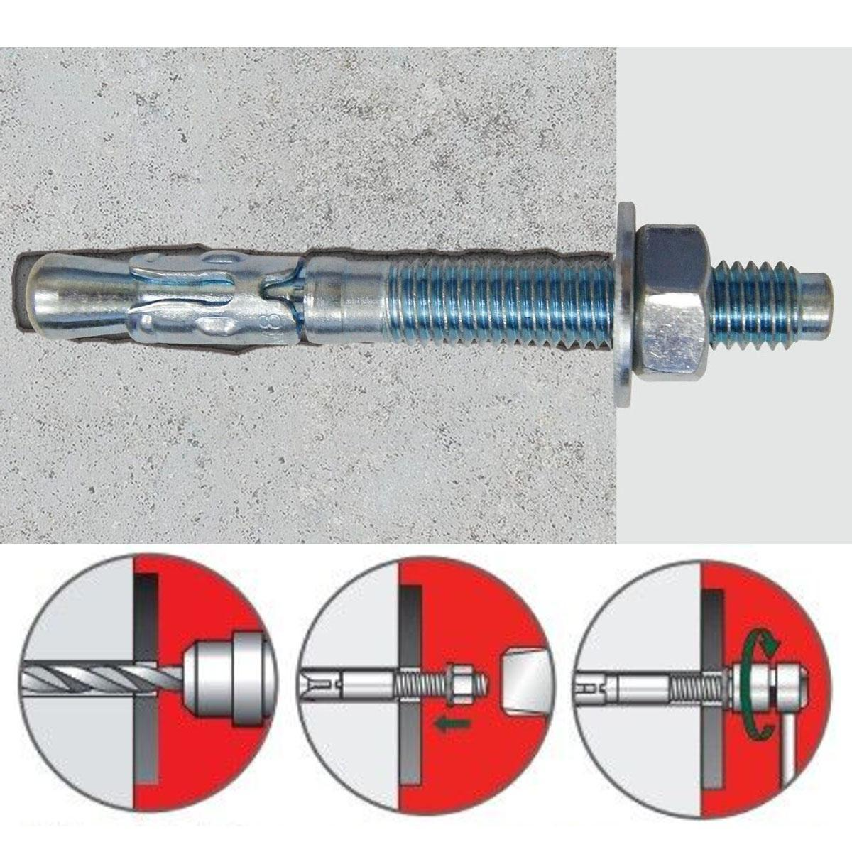 Nagy szilárdságú kötés, betonba rögzítéshez használatos. A megfelelő méretű furatba illesztett alapcsavart kalapács ütéssel kell rögzíteni a betonban, majd ezután az anya meghúzásával rögzítheti a munkadarabot.