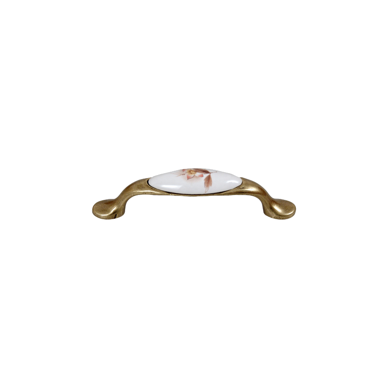 Fogantyú, E052-96, anyaga: antikolt bronz, porcelán, barna virág mintával. Külméret: 3,2*12,7*2 cm (sz*ma*mé)