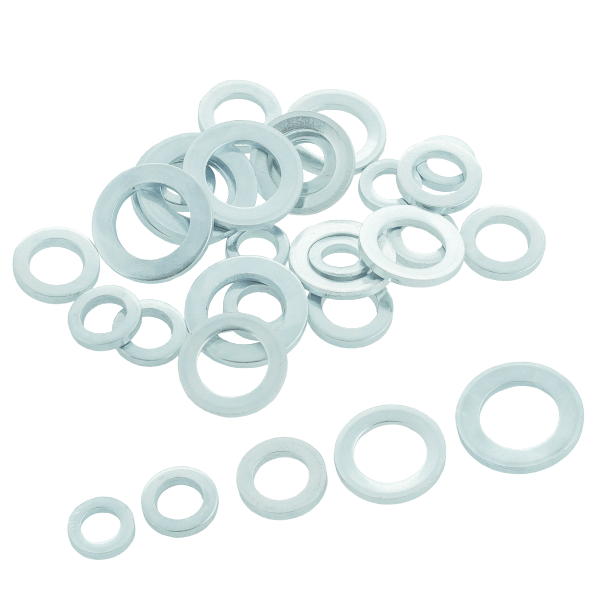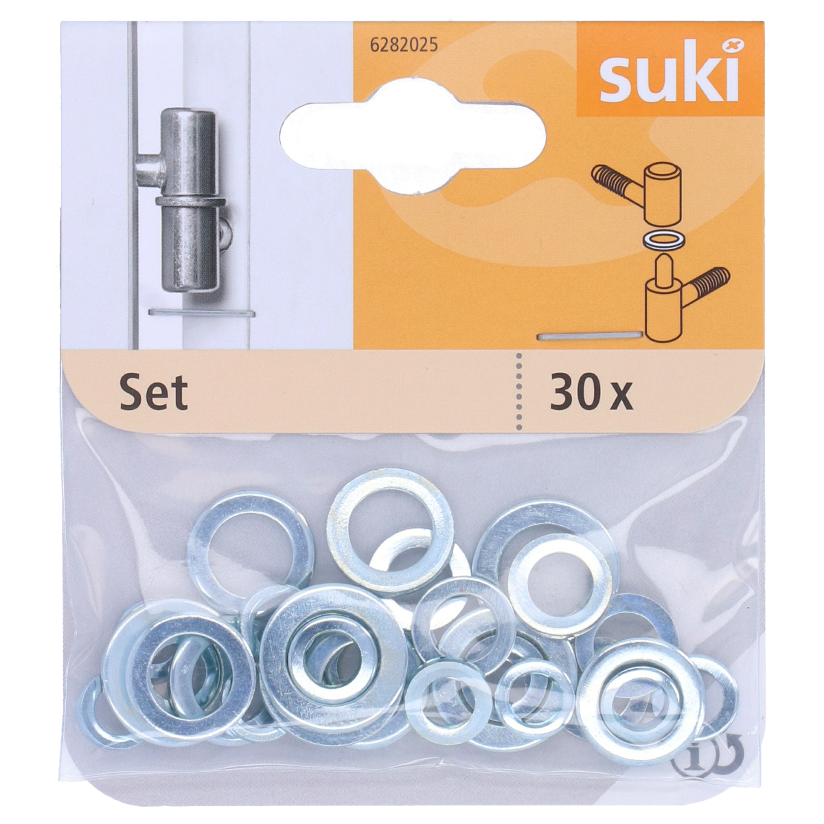 Nikkelezett ajtópánt gyűrű készlet az ajtók beállításához/megemeléséhez, különböző méretekben (5x10, 6x11, 7x13, 10x16, 10x18mm).