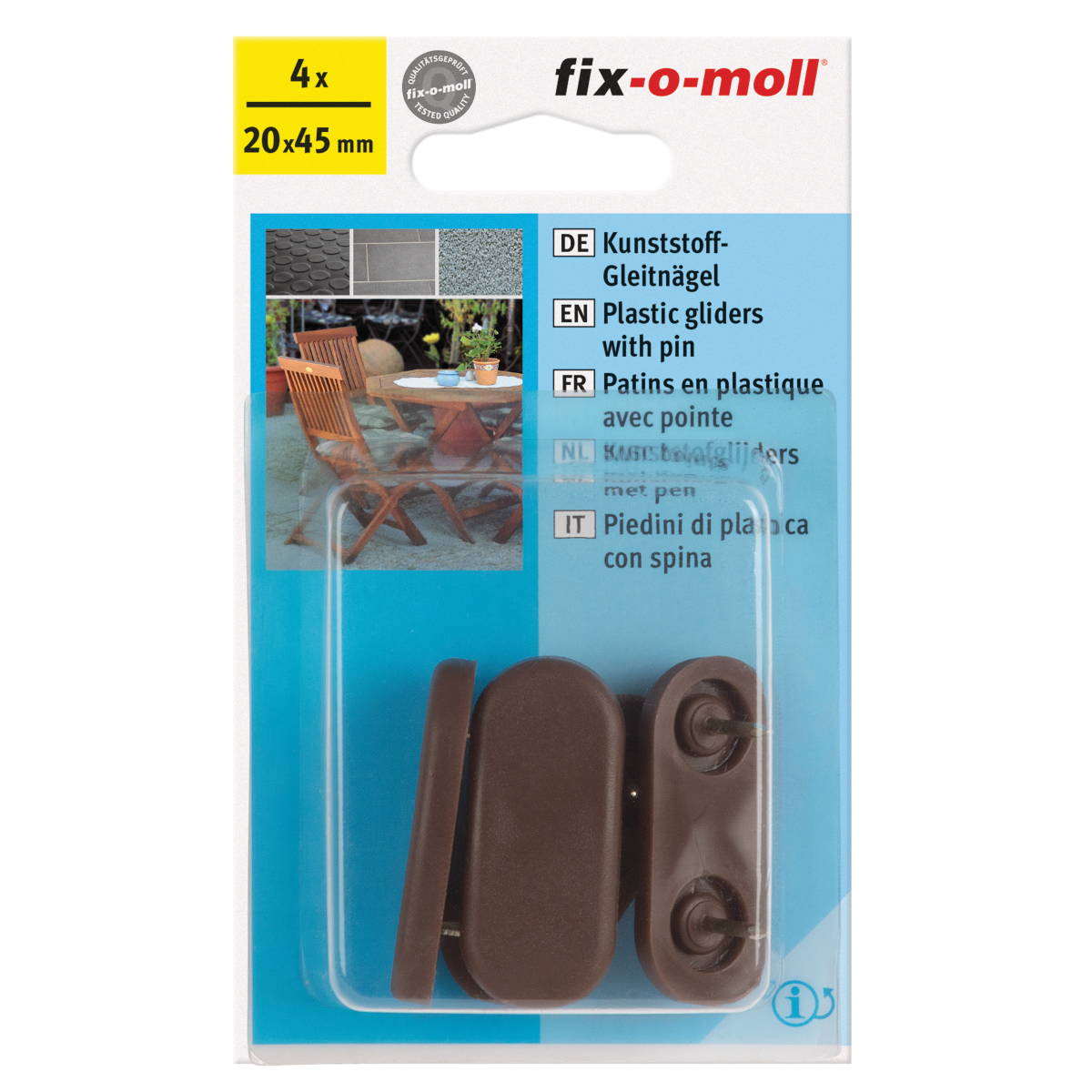 4 db-os beüthető műanyag padlóvédő szett barna színben, 45x20 mm méretben.