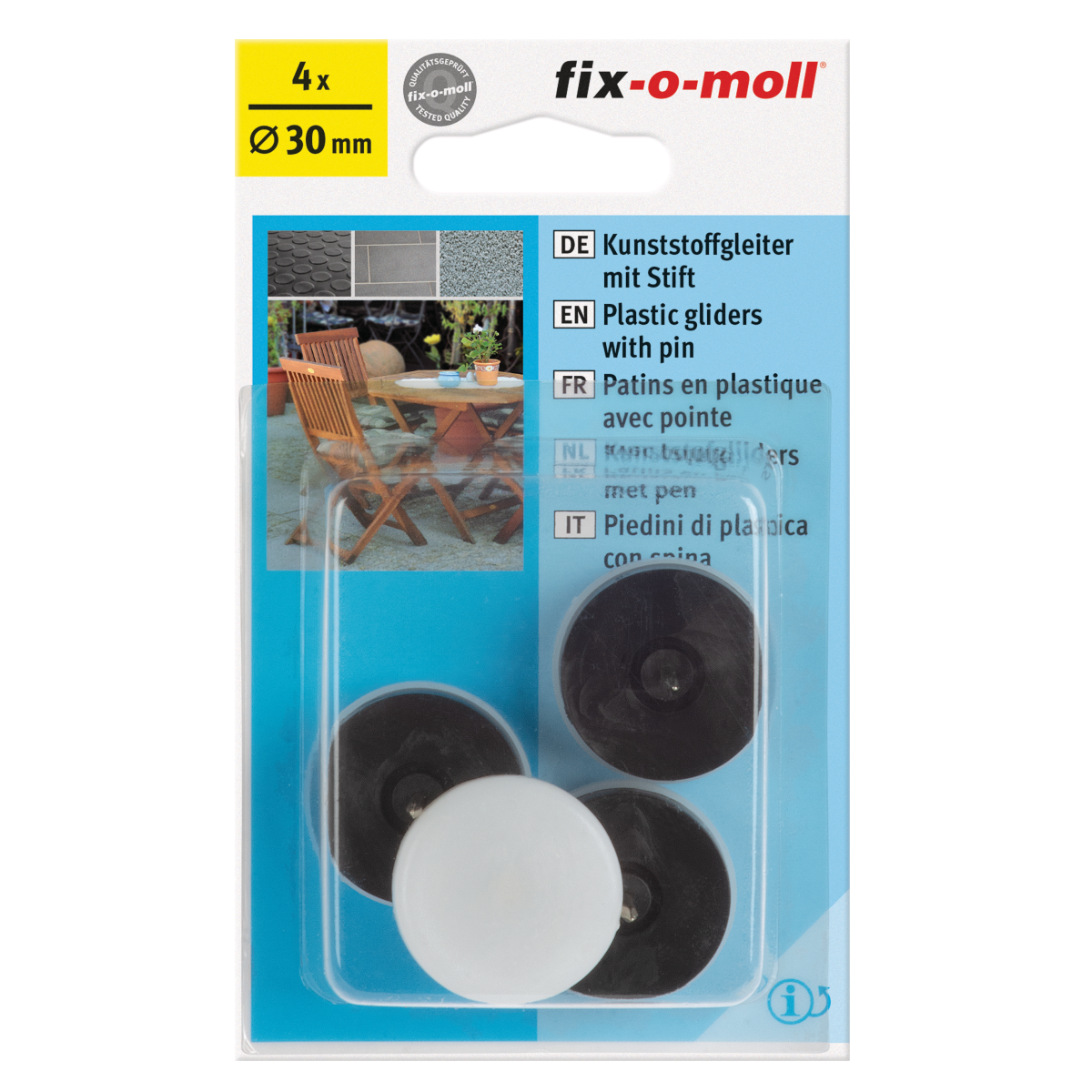 4 db-os beüthető műanyag padlóvédő fehér színben, átmérő: 30 mm.