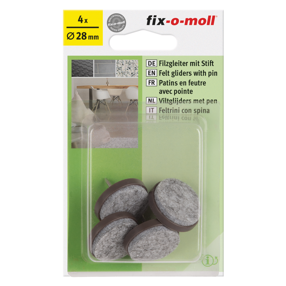 4 db-os beszúrható csúszásgátló filc barna színben, átmérő: 28 mm.