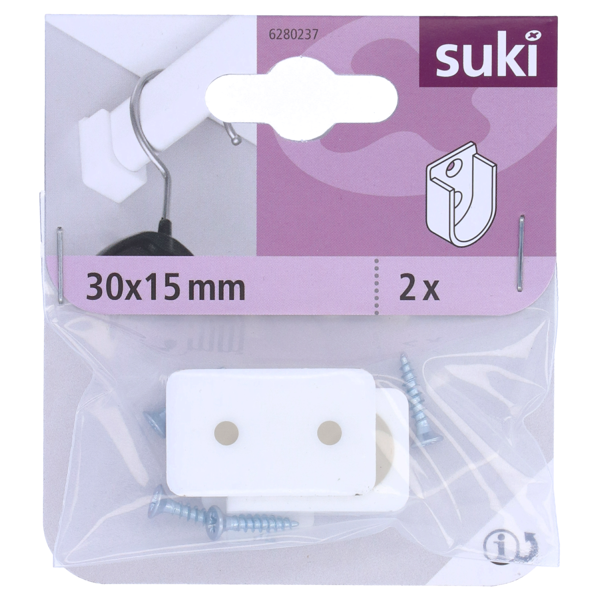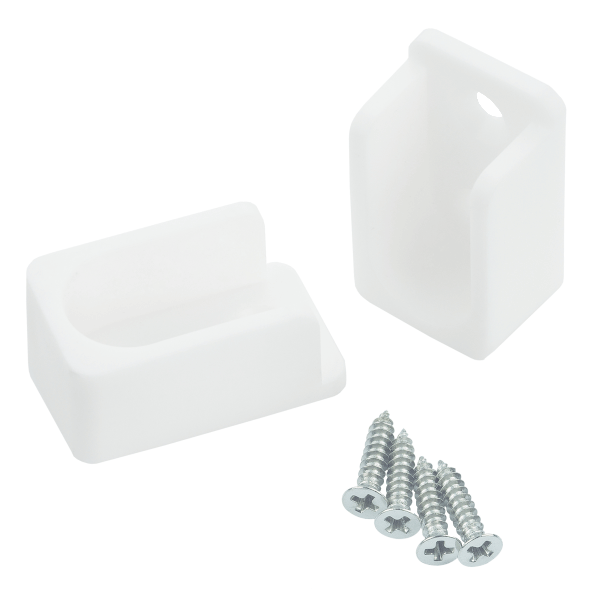 Műanyag rúdtartó foglalat szekrényekhez, fehér színben.