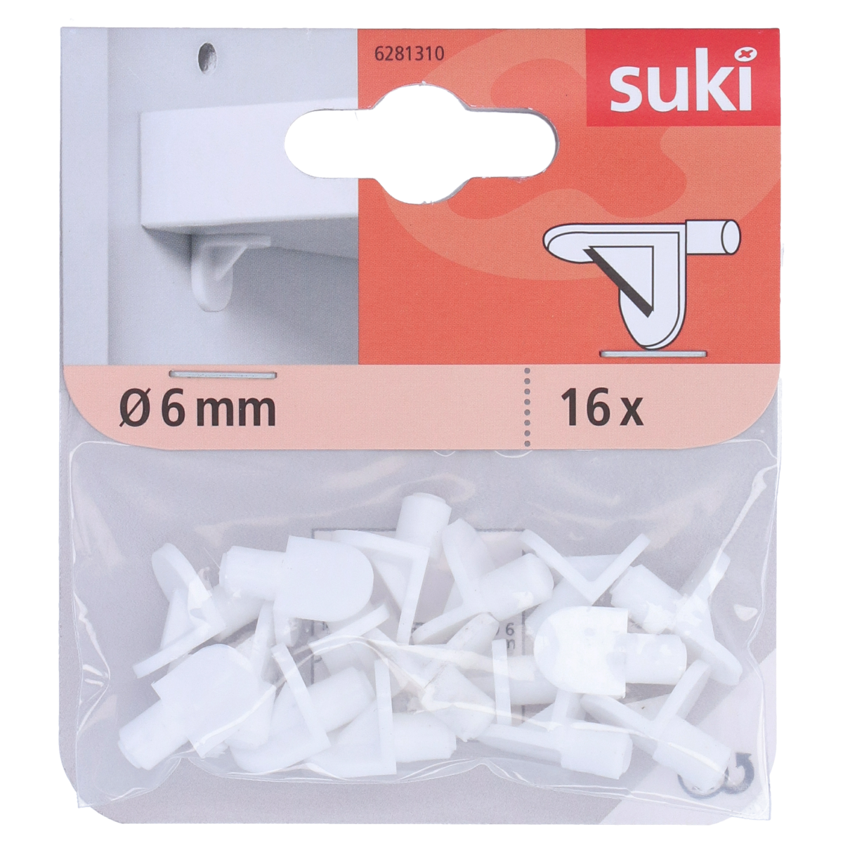 6 mm-es műanyag polctartó fehér színben, a polcok biztonságban tartásához.