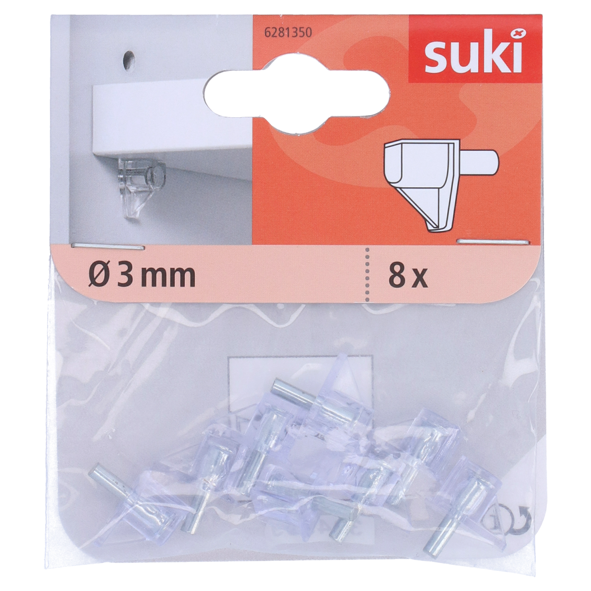 3 mm-es műanyag polctartó szeggel, a polcok biztonságos tartásához.