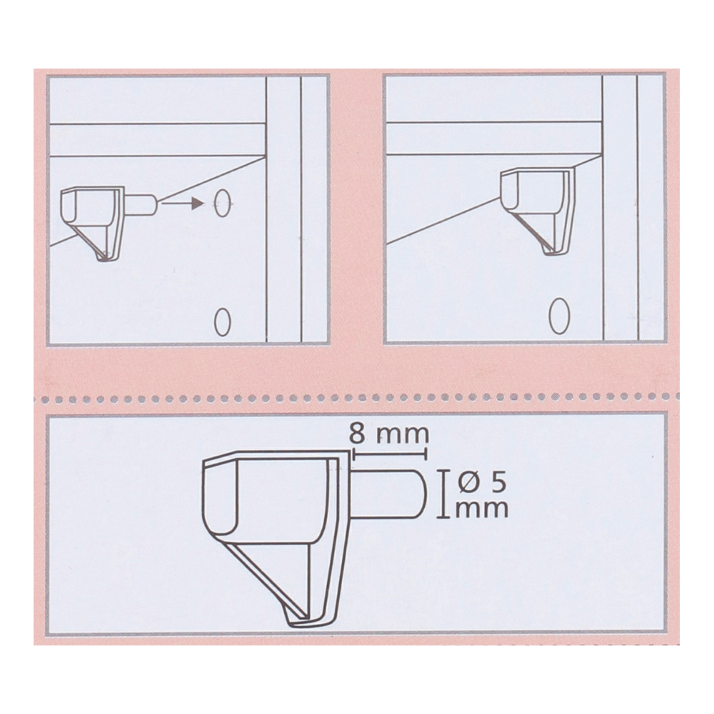 Ideális megoldás polcok biztonságos és stabil rögzítésére bútorlapokhoz. Könnyen használható, tartós megoldást nyújt. Praktikus eszköz minden típusú bútorhoz.