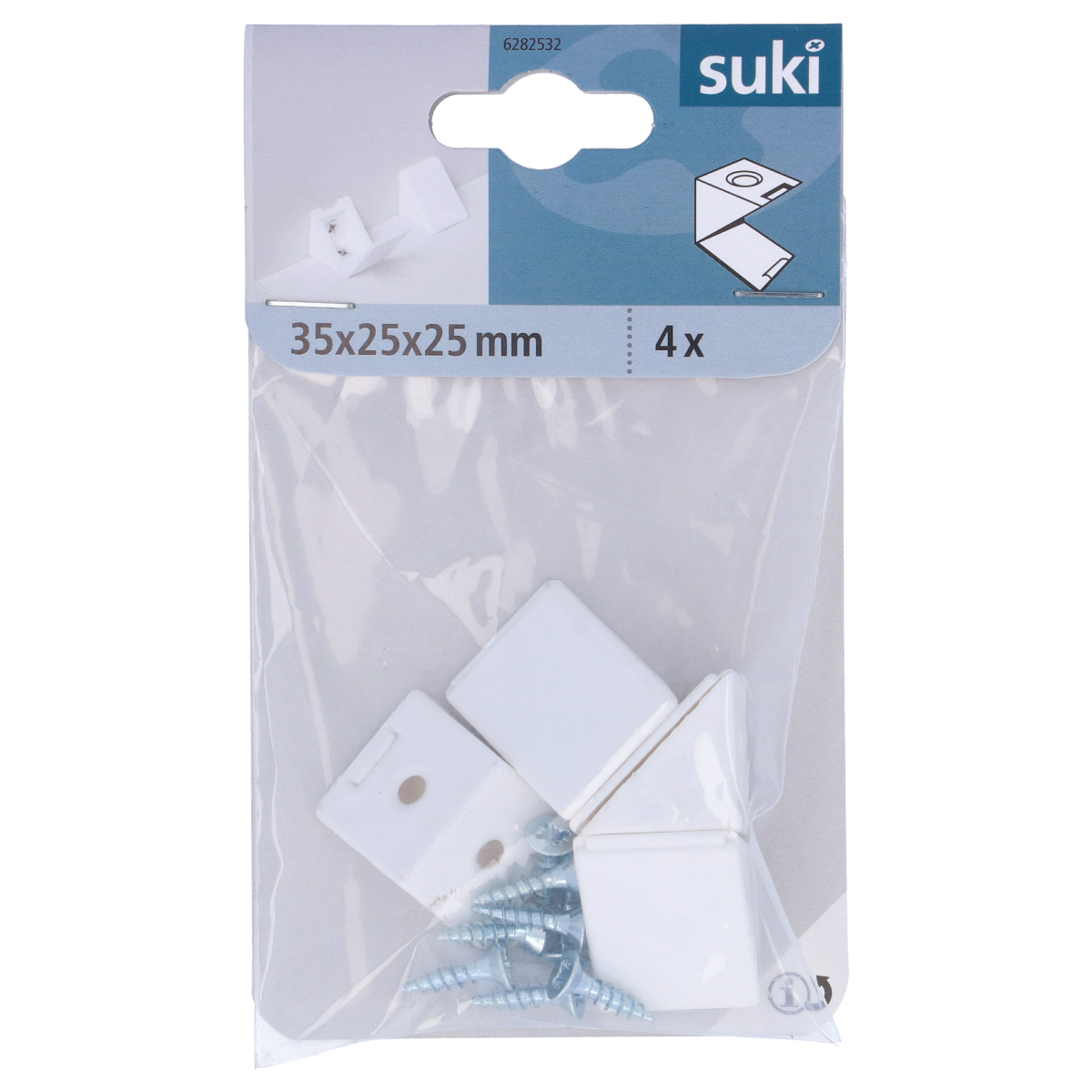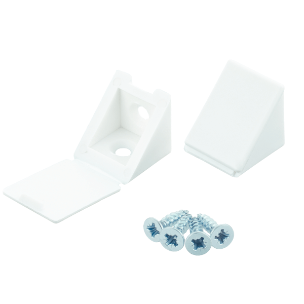 Fehér színű műanyag sarokrögzítő 35x25x25mm méretben.