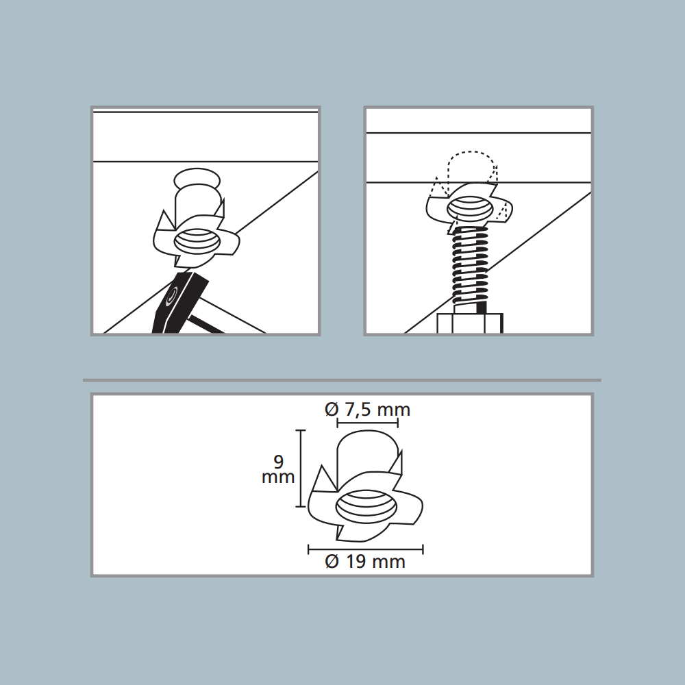 Beütős kialakításának köszönhetően egy kalapáccsal könnyen és gyorsan beüthető különböző fa anyagokba.