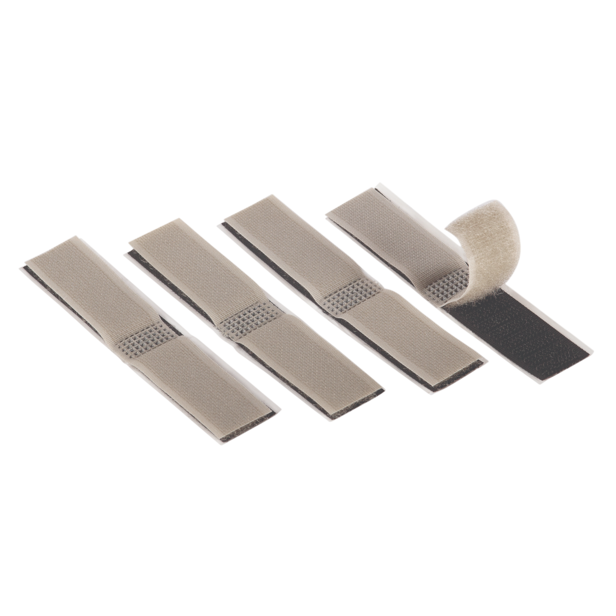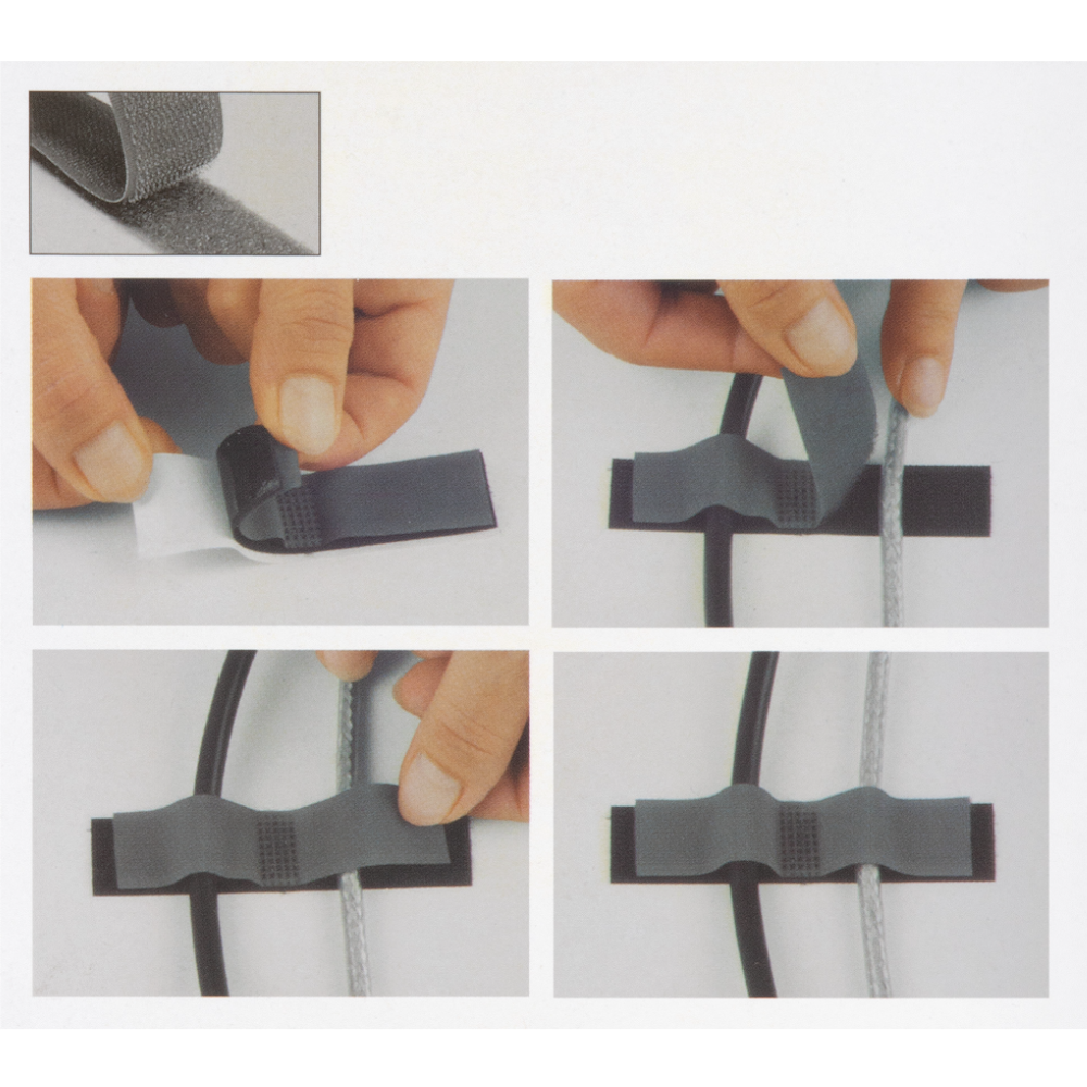 A csomag 4 db fekete-szürke színű huzalkötegelőt tartalmaz, melyek öntapadós és tépőzáras kialakítással rendelkeznek.