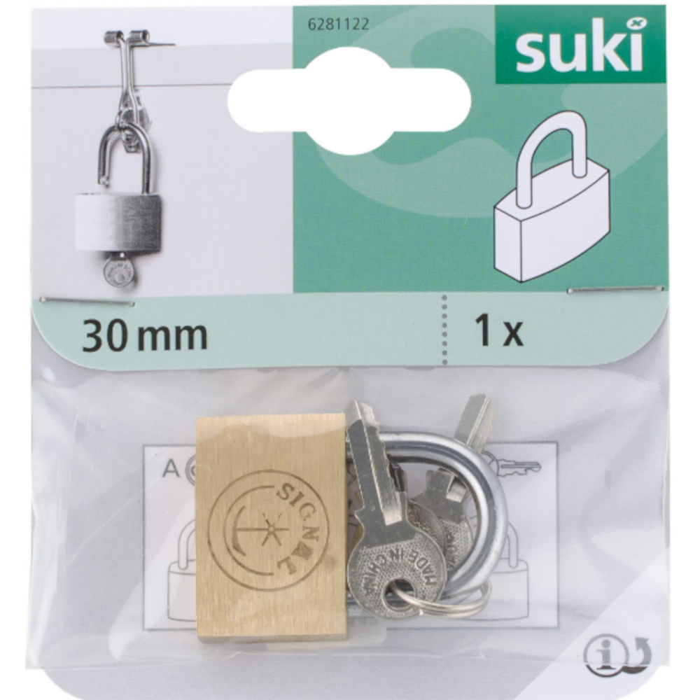 A Suki 30 mm-es réz lakat praktikus és megbízható megoldás kisebb tárgyak vagy helyek biztonságos lezárására. Tartós, sárgaréz anyaga hosszú élettartamot és korrózióállóságot biztosít. Kompakt mérete és egyszerű kezelhetősége miatt kiváló választás mindennapi használatra.