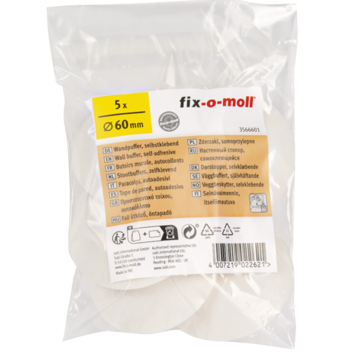 A Suki öntapadó és csavarozható fali ütköző 60 mm-es, fehér kivitelben, praktikus megoldást kínál a falak védelmére és az ajtók zajmentes záródására. Az öntapadó réteg gyors és egyszerű rögzítést biztosít, míg a csavarozható lehetőség extra tartósságot nyújt. A csomag 5 darabot tartalmaz, ideális választás otthoni vagy irodai környezetben.