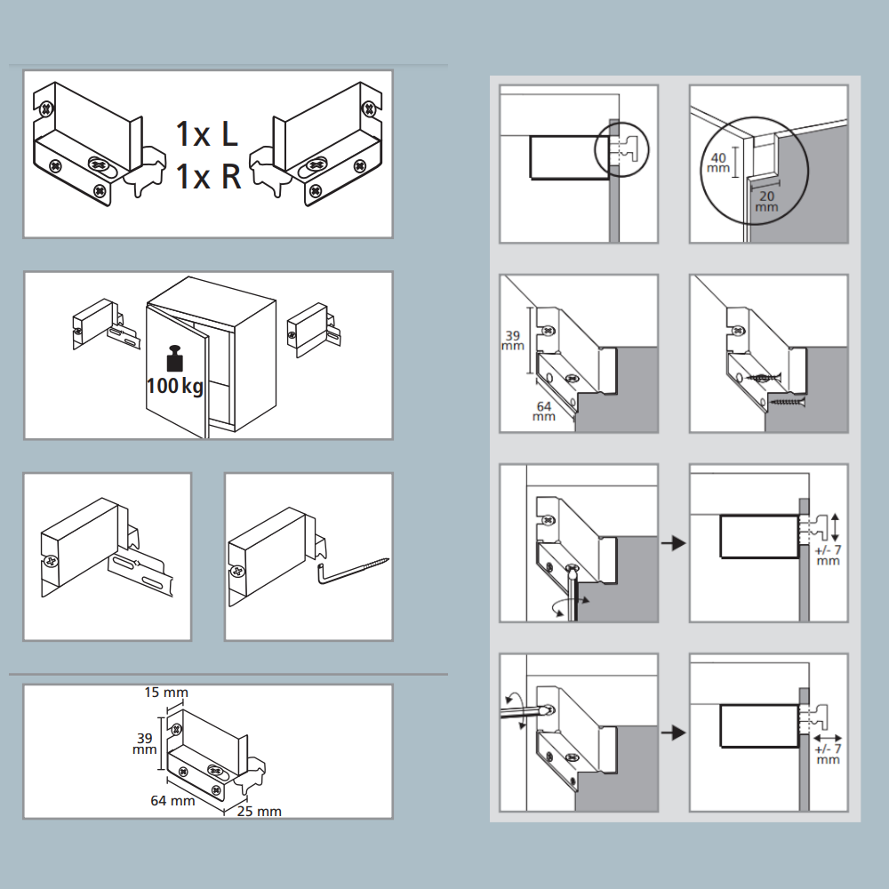 Erős és megbízható szerkezete biztosítja, hogy a legfeljebb 100 kg-os szekrény megfelelően tartson, elkerülve a baleseteket vagy sérüléseket.