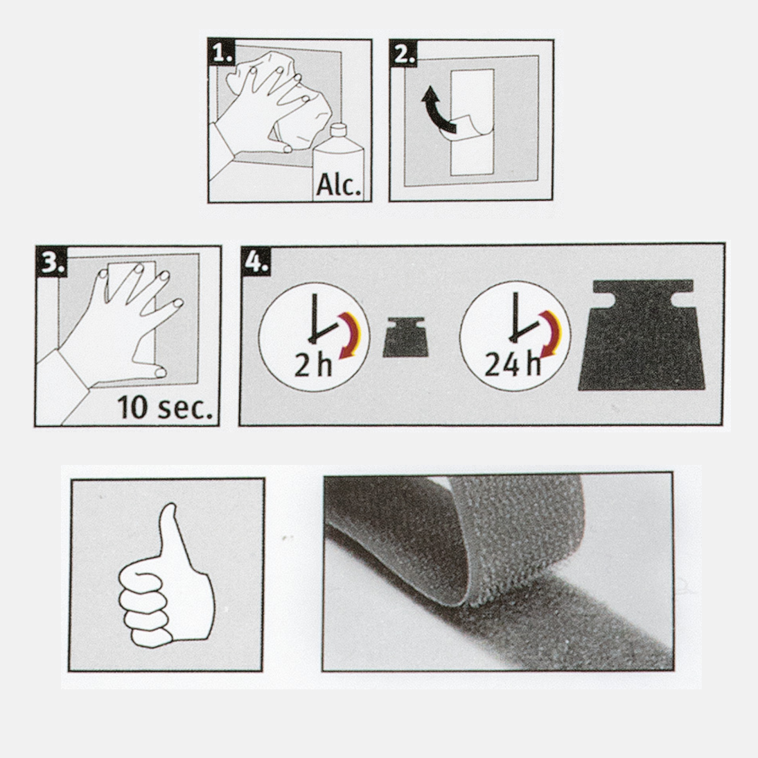 A tépőzáras lap megoldást kínál tárgyak rugalmas és kényelmes rögzítésére sima beltéri felületeken.