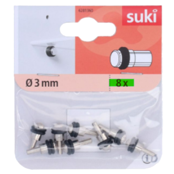 3 mm átmérőjű üvegpolc tartó, fém/gumi anyagból, fekete színben, 8 db/csomag kiszerelésben.