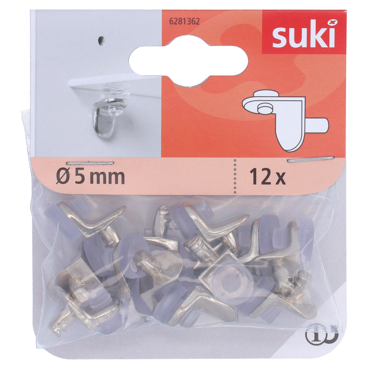 Átlátszó, 5 mm-es fém/gumi üvegpolctartó 12 db/csomag kiszerelésben.
