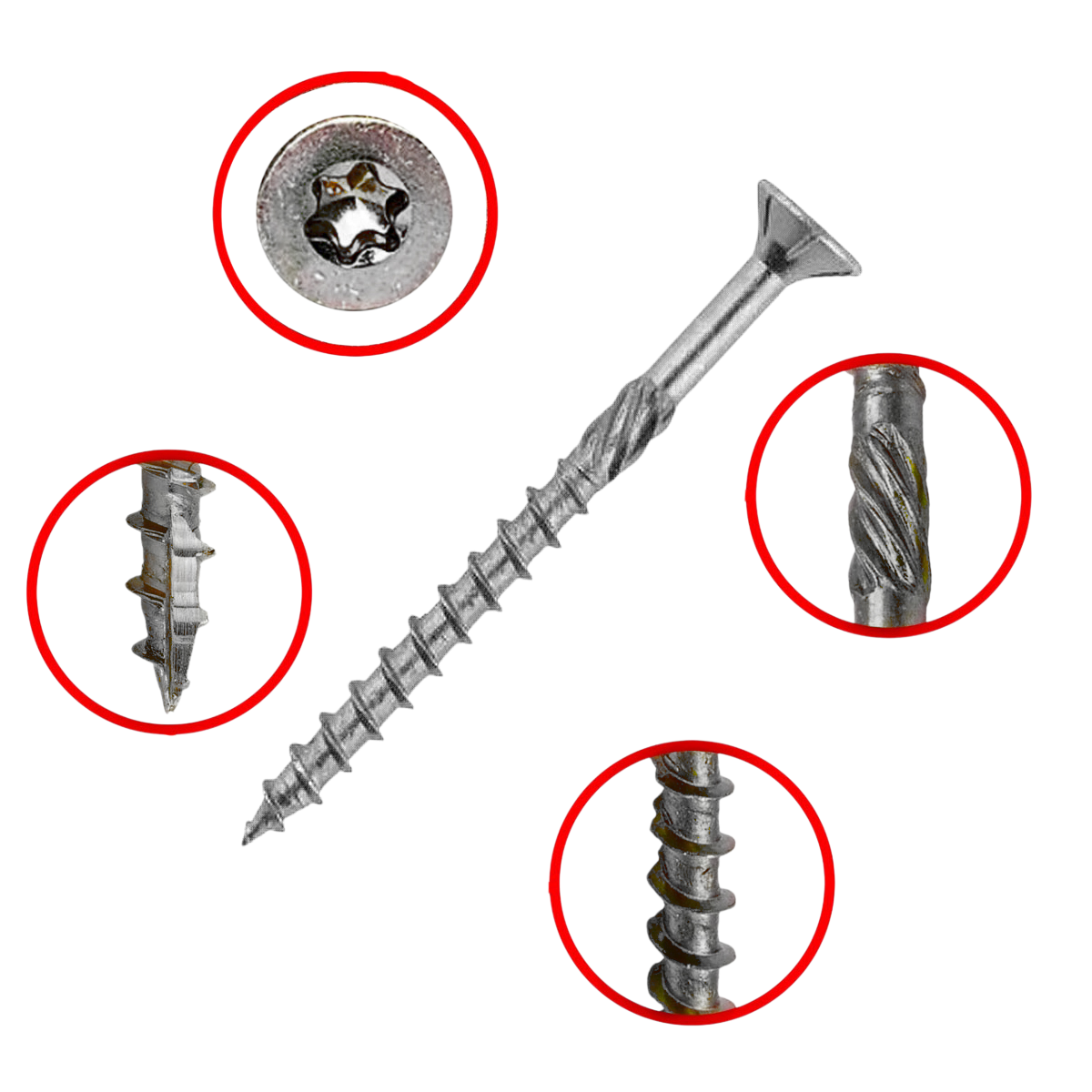 Csavarfej: süllyesztett fejű, Torx csillaghornyos, horganyzott.