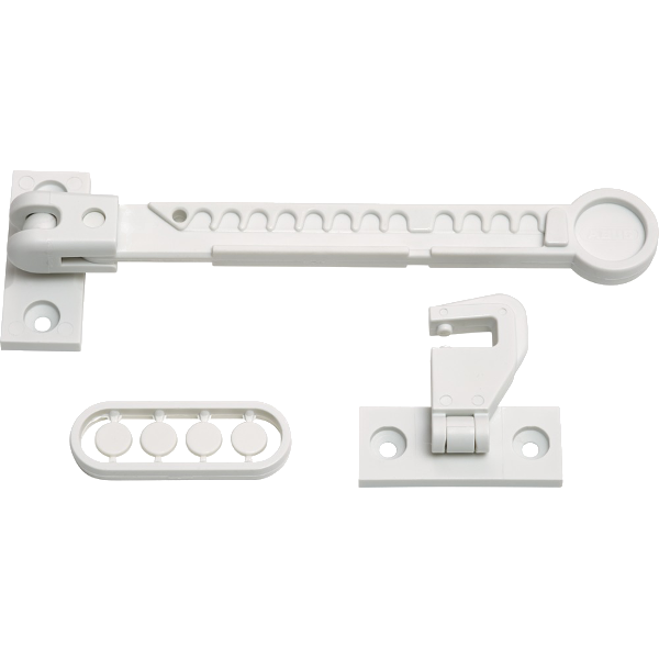 A NINO ablakkitámasztó megakadályozza az ablak becsapódását, illetve megakadályozza akár a gyerek kezének becsípését. Az ablak maximális nyílása 120mm. Alkalmas befelé és kifelé nyíló ablakokhoz. Egyszerű ragasztós szerelés, de akár csavarokkal is felszerelhető (ez utóbbi nem a termék része).