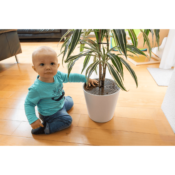 A jó minőségű műanyagból készült virágföldvédő megakadályozza, hogy a kisgyermekek kiszedjék a virágföldet, illetve alkalmas akár a háziállatok elleni védelemre is. Igazán praktikus, mivel méretre vágható, maximum 30 cm-es cserépátmérőig.