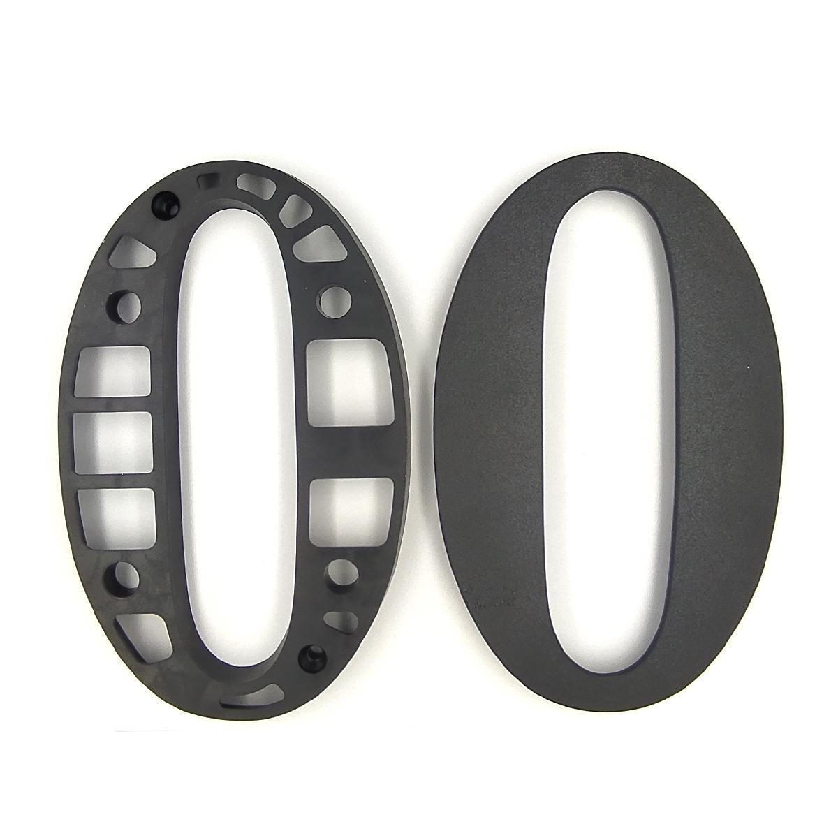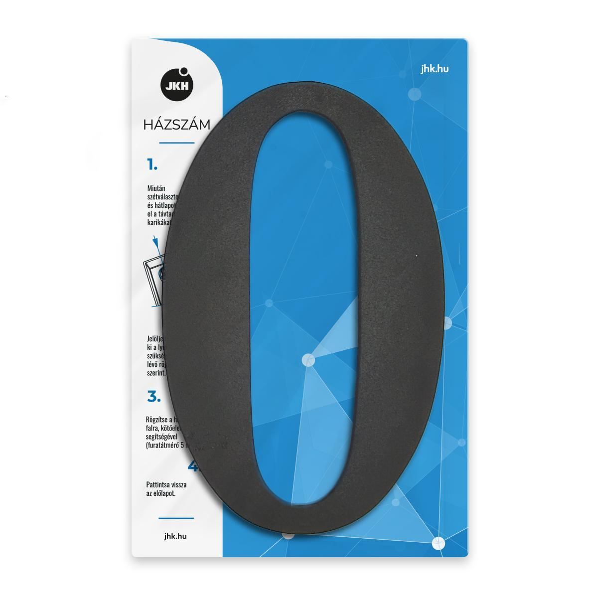 Műanyagból készült házszám, matt fekete színben. A termék a kívánt felületre a falazatnak megfelelő kötőelemekkel rögzíthető. A termék a rögzítéshez szükséges csavart és tiplit nem tartalmazza. Két részből áll elő- és hátlapból. A hátlap 5mm átmérőjű furatokkal van ellátva, amelyen keresztül könnyen rögzíthető. Az előlap pedig a hátlapra pattintható.