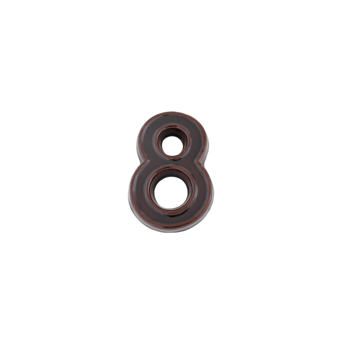 Kerámia házszám, barna színben. Rögzítéshez tartozékok: 2 db tipli + 2 csavarszár (tipli mérete: 8x50 mm, csavarszár mérete: M5x35 mm).A házszám magassága csomagolás nélkül: 12cm; a termék szélesség és mélység adata a számok különbözősége és anyaga miatt, valamint a gyártás során változhat, így ezen adatok a csomagolt termék adatok.