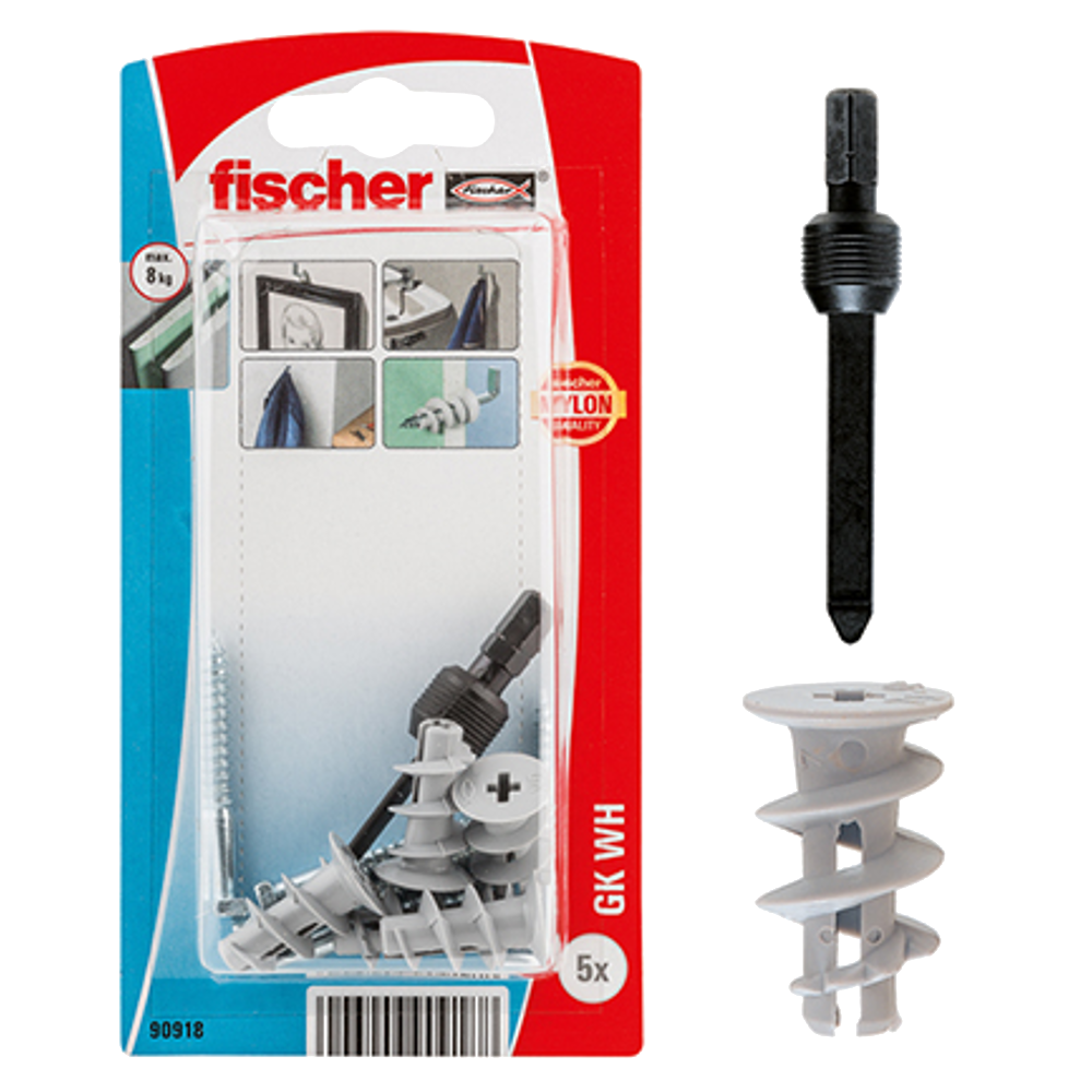 A Fischer gipszkarton dübele a leggyorsabb szerelést teszi lehetővé. Rövidsége miatt a legkülönfélébb lapvastagságok és üregmélységek esetén alkalmazható. Önmetsző menete pedig biztonságos, formazáró rögzítést tesz lehetővé, amivel nagy teherbírás érhető el. Alkalmazható: képek, lámpák, villanyszerelés, kiegészítő berendezési tárgyak, sorozatszerelések.